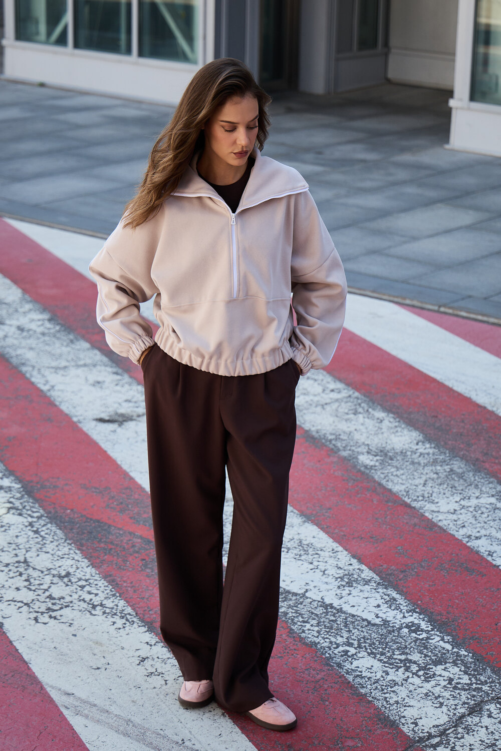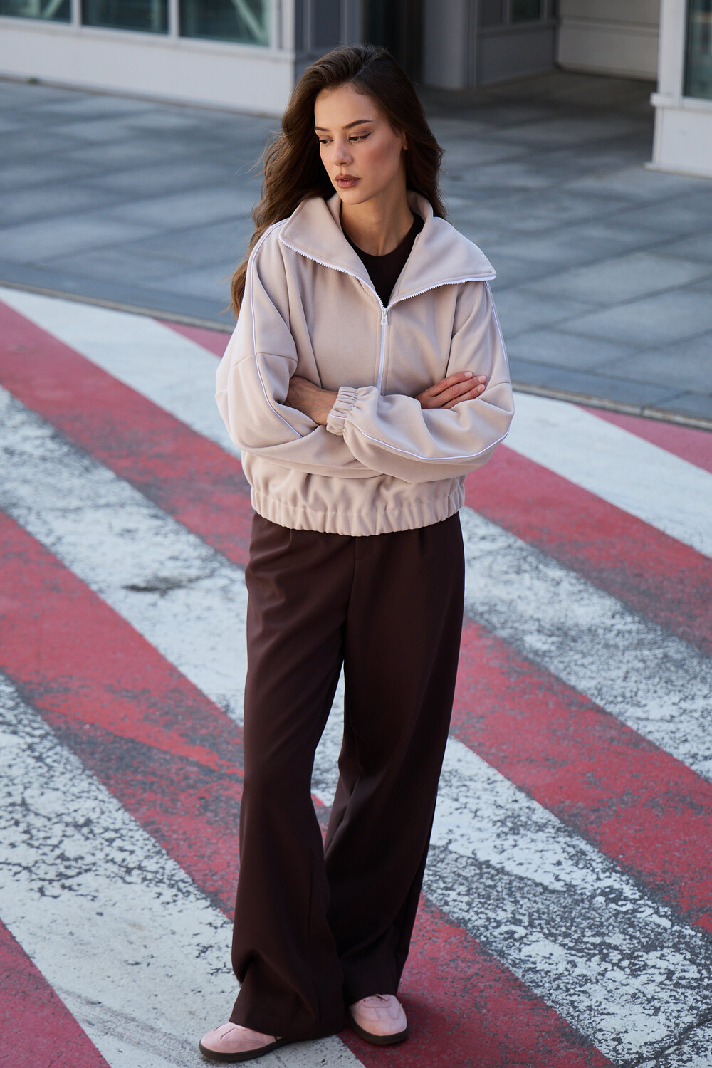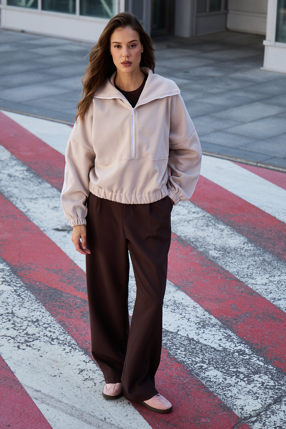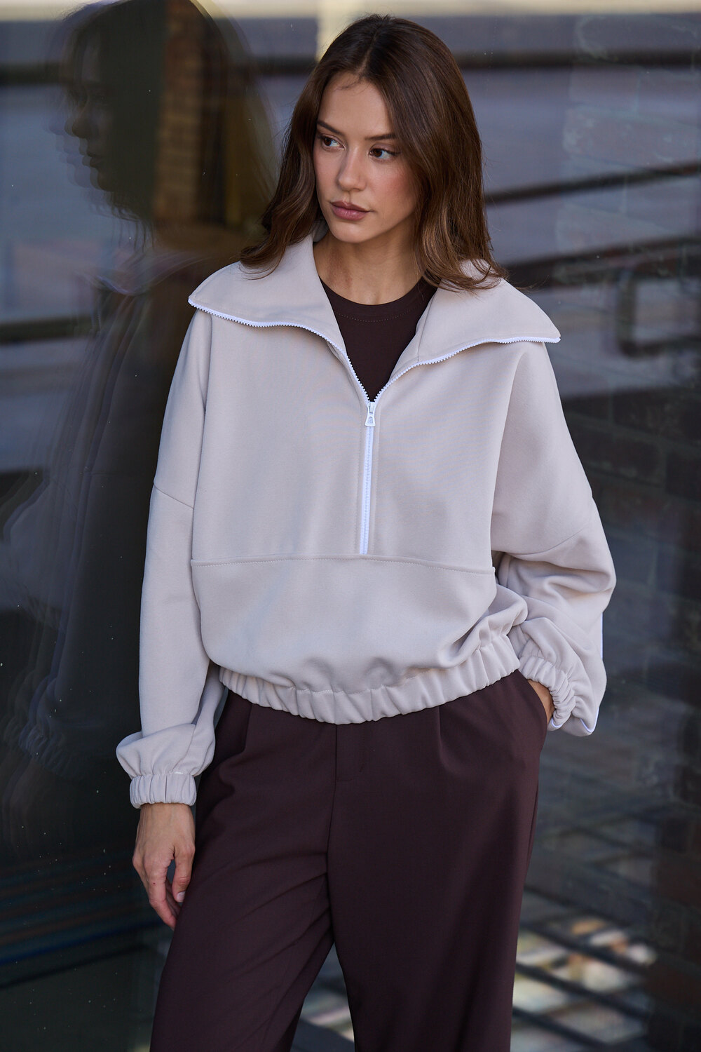 Свитшот это воплощение комфорта и стиля, универсальная толстовка свободного кроя, часто дополненная высоким воротником на молнии. Однотонный свитшот лаконичный манифест моды, бессмертный элемент гардероба, сохраняющий актуальность даже в своей минималистичной чистоте. Цвет: бежевый; Материал: велюр;лининг велюр;лининг велюр;велюр; Состав: 65% хлопок, 35% полиэстер.