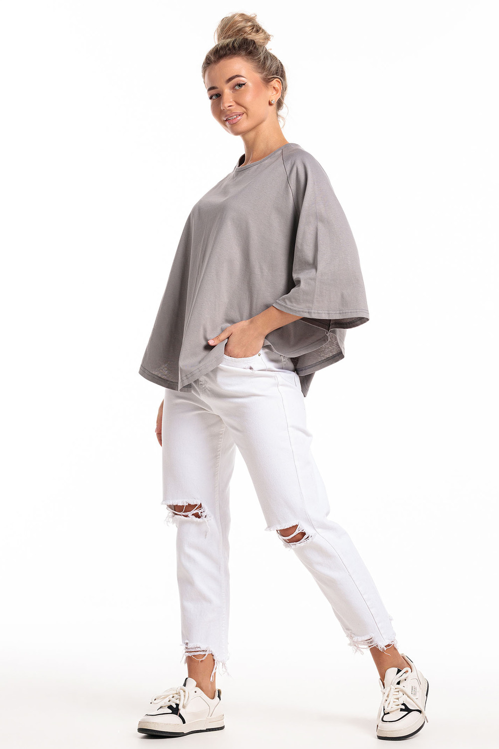 Пончо - это стильная и удобная туника женская, которая станет отличным дополнением к вашему гардеробу. Она идеально подходит для тех, кто любит комфорт и стиль в одежде. В этой тунике вы будете выглядеть модно и элегантно в любой ситуации. Цвет: серый;черный; Материал: кулирка; Состав: хлопок-100%.
