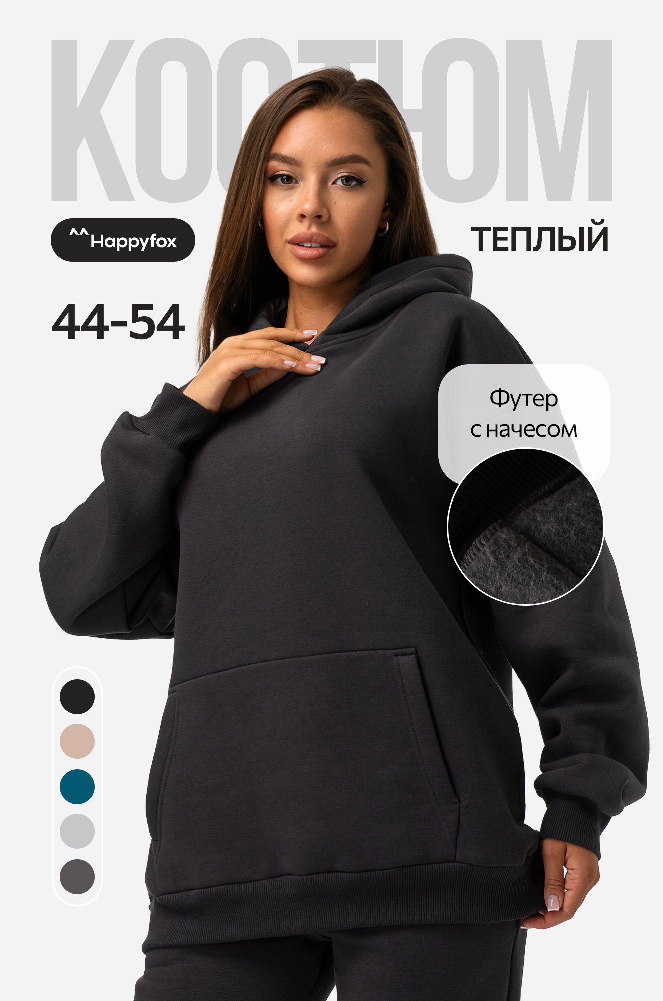 Надежный спутник спорта, туризма и отдыха на природе! Теплый женский костюм темно-серого цвета выполнен из качественного трикотажа футер с начесом. В комплекте толстовка с капюшоном и брюки джоггеры.