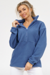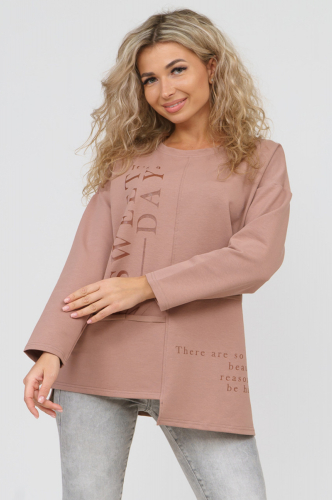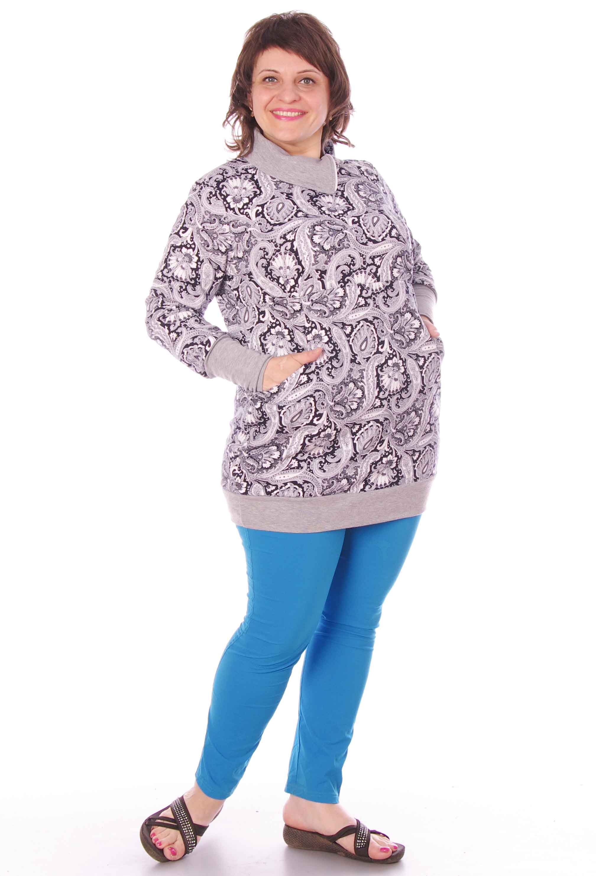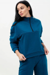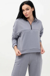 Удлиненная толстовка на манжете с карманами. Оригинальный высокий воротник на молнии сбоку. На рукавах высокие эластичные манжеты. Ткань - практичный петельчатый футер.