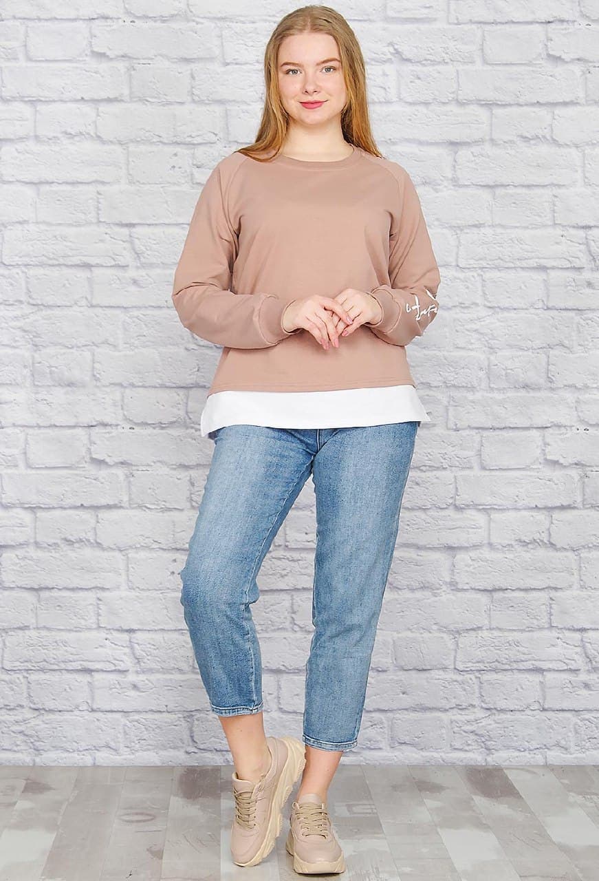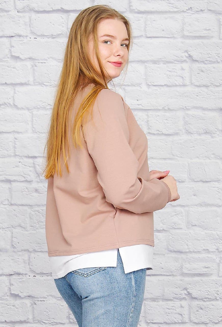 Стильная женская толстовка - имитация "двойки". Модель свободного кроя, на рукаве неброский, но эффектный печатный принт.