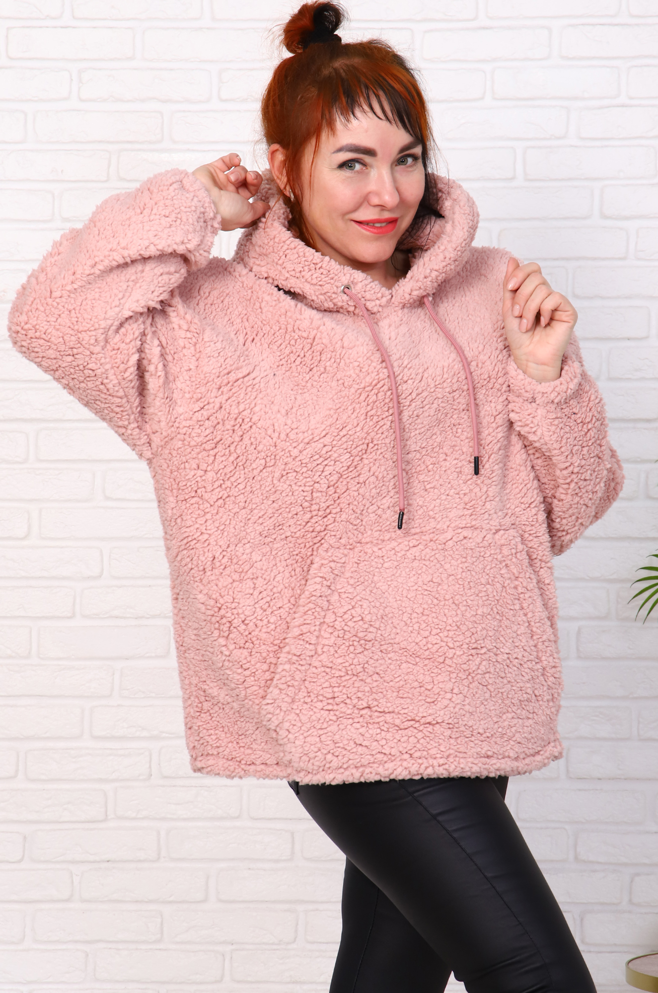 Настоящий хит этого года - невероятно уютная, мягкая, тёплая и очень стильная толстовка "барашек" в размере оверсайз. Подойдёт от 44 до 54 размера. Модель "унисекс" отлично смотрится и на девушках, и на парнях, на любой возраст и на любую фигуру. Прямой крой, рукава на резиночке, удобный капюшон и карман-кенгуру.