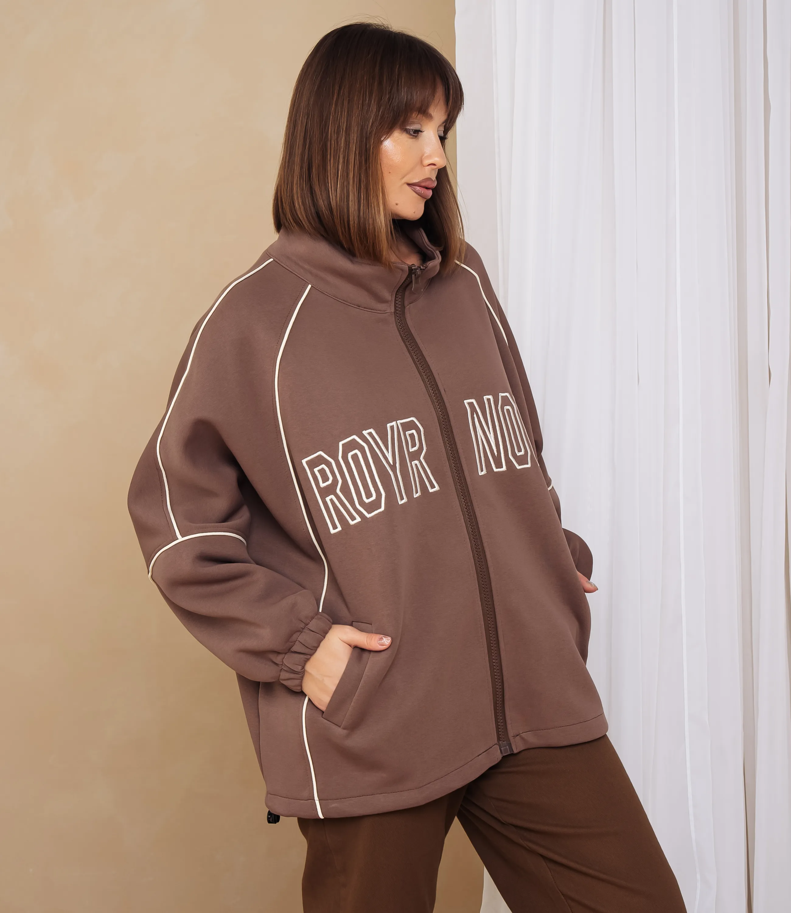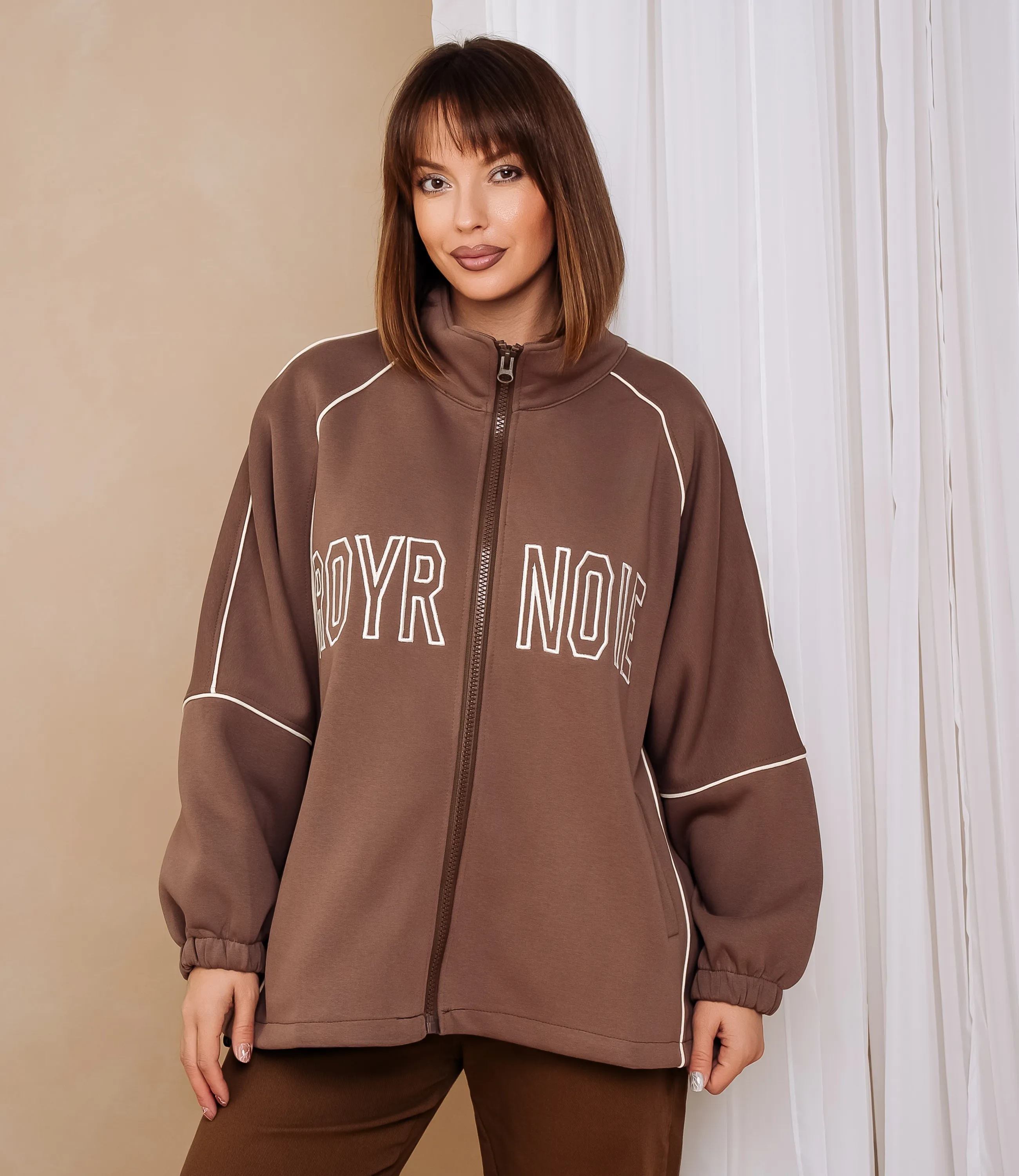 Толстовка – это идеальный элемент гардероба, который подчеркнёт комфорт каждой девушки. Свободного кроя, слегка оверсайз, длиной до середины бедра с заниженной линией плеч и широкими рукавами, которые собраны у манжет на эластичную тесьму, образуя мягкую сборку; выполнена из плотного трикотажа или футера средней плотности с немного фактурной, мягкой поверхностью, достаточно плотной, чтобы держать форму и образовывать плавные складки; воротник‑стойка средней высоты и центральная видимая застёжка‑молния во всю длину с металлическим бегунком; рукава регланного типа с декоративной отделочной строчкой по плечу и по всей длине рукава. Для пошива использована ткань с составом 65% хлопка, 30% полиэстера и 5% эластана, что обеспечивает отменное качество и долговечность. Даже после многократных стирок толстовка останется в отличном состоянии. Вы сможете носить её с большим удовольствием. Обратите внимание на представленный цвет – он глубокий и соответствует фотографии на сайте. Чтобы вы были уверены в размере, на странице доступна таблица с размерами. Воспользовавшись ею, вы сможете обмерить себя и убедиться в правильности выбора. Наша цена является доступной и адекватной. Не упустите возможность подарить себе комфорт и стиль!