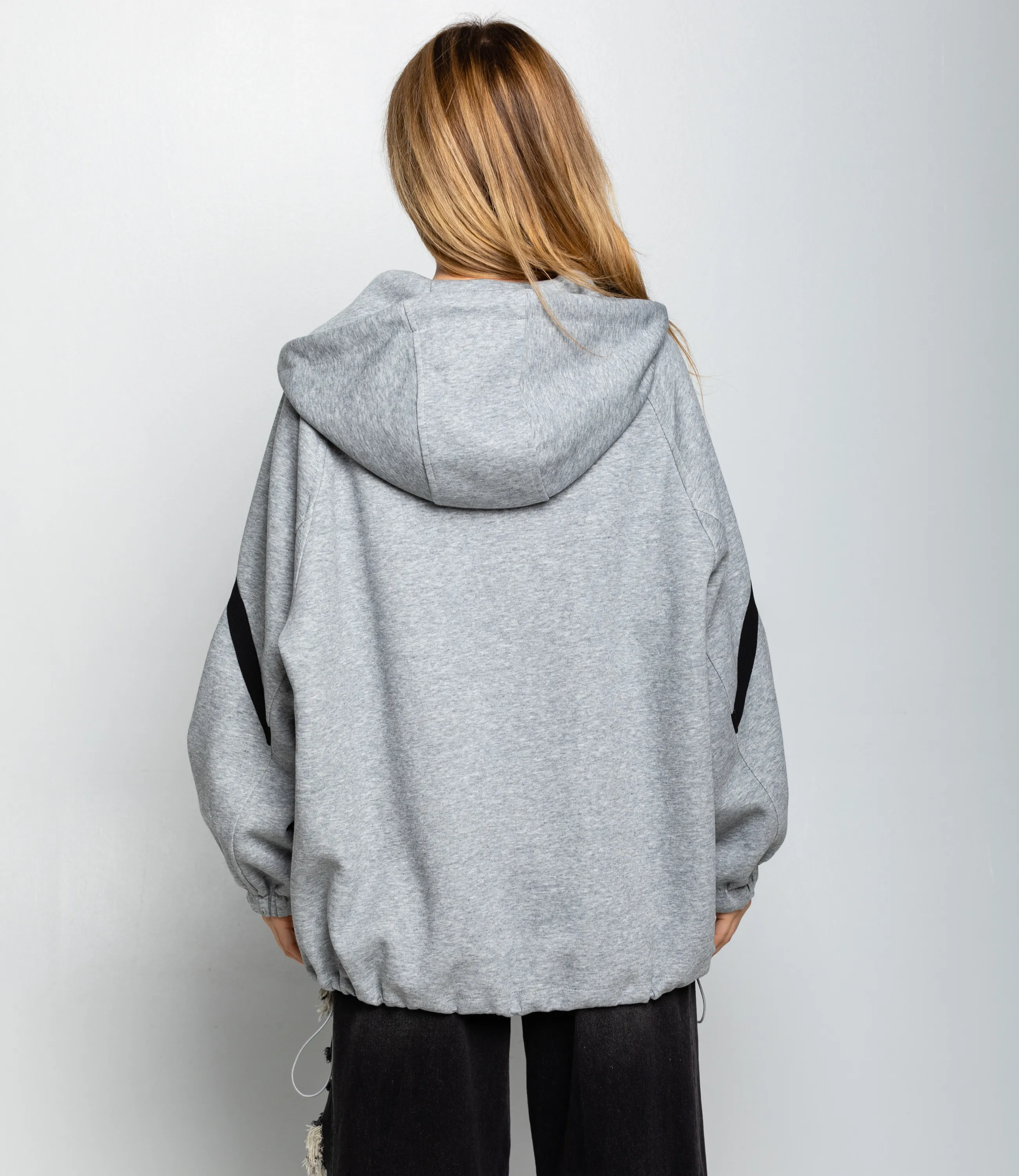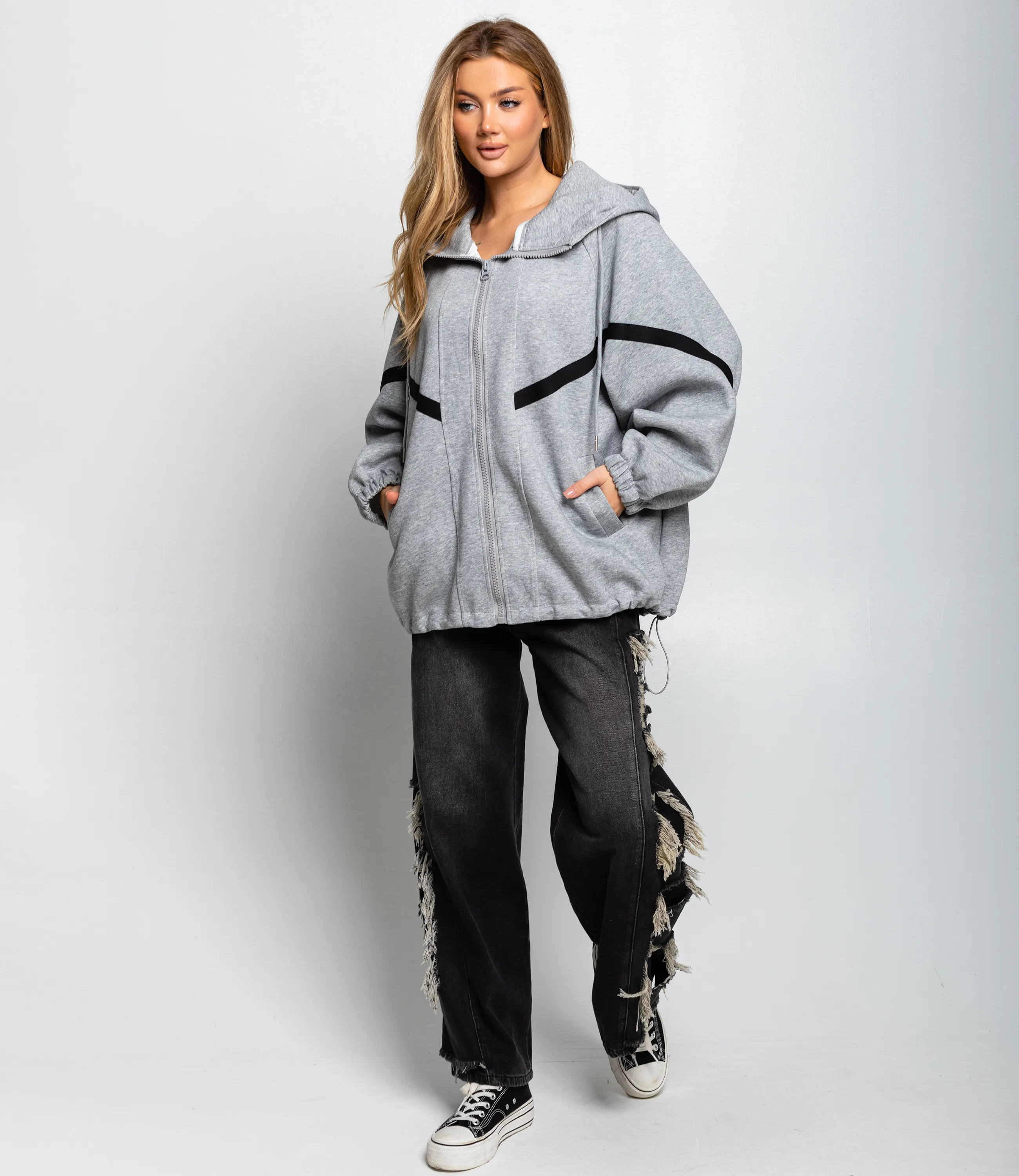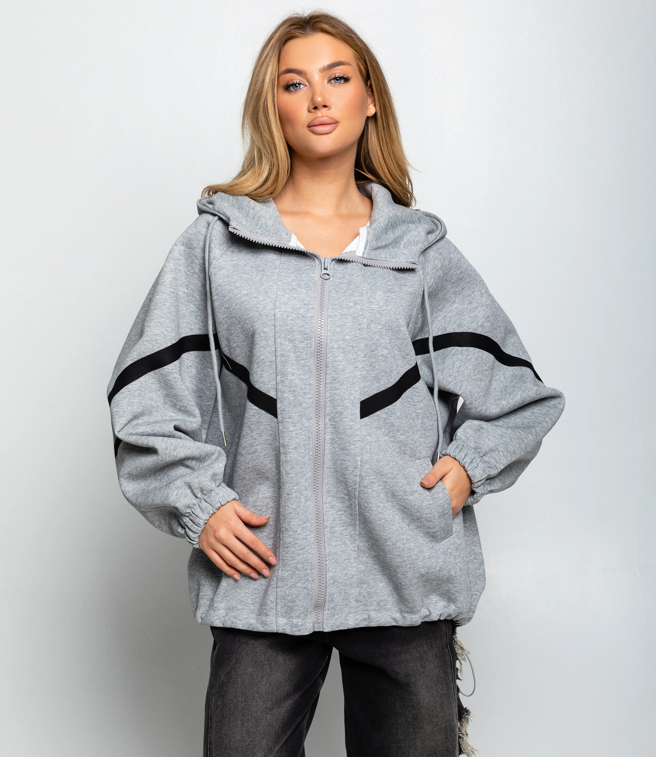 Толстовка – это идеальный элемент гардероба, который подчеркнёт комфорт каждой девушки. Толстовка выполнена из плотного трикотажного материала с ровной лицевой гладью и мягким внутренним ворсом, создающего тёплую, уютную основу. Модель свободного, слегка оверсайзного силуэта с мягко опущенной линией плеча и объёмными рукавами, которые собираются по линии запястья эластичной притачной манжетой. Передняя часть застёгивается на центральную потайную молнию, проходящую от низа до горловины, где к молнии примыкает просторный капюшон с двумя стяжками-шнурками и двойной структурой края для плотной посадки. По бокам расположены втачные карманы, оформленные в накладном стиле и интегрированные в общий силуэт, обеспечивающие практичность и удобство. Низ толстовки собран на кулиску с фиксацией, что позволяет регулировать объём и придаёт модели лёгкую геометричность. На уровне груди и рукавов выполнены контрастные широкие декоративные полосы, нанесённые в виде крупных горизонтальных планок, визуально расширяющие линию плеч и придающие спортивный характер. Для пошива использована ткань с составом 65% хлопка, 30% полиэстера и 5% эластана, что обеспечивает отменное качество и долговечность. Даже после многократных стирок толстовка останется в отличном состоянии. Вы сможете носить её с большим удовольствием. Обратите внимание на представленный цвет – он глубокий и соответствует фотографии на сайте. Чтобы вы были уверены в размере, на странице доступна таблица с размерами. Воспользовавшись ею, вы сможете обмерить себя и убедиться в правильности выбора. Наша цена является доступной и адекватной. Не упустите возможность подарить себе комфорт и стиль! Вы можете заказать онлайн презентацию на интересующие Вас модели. Наши менеджеры свяжутся с Вами и проведут индивидуальную видеотрансляцию, помогут составить заказ и ответят на Ваши вопросы.