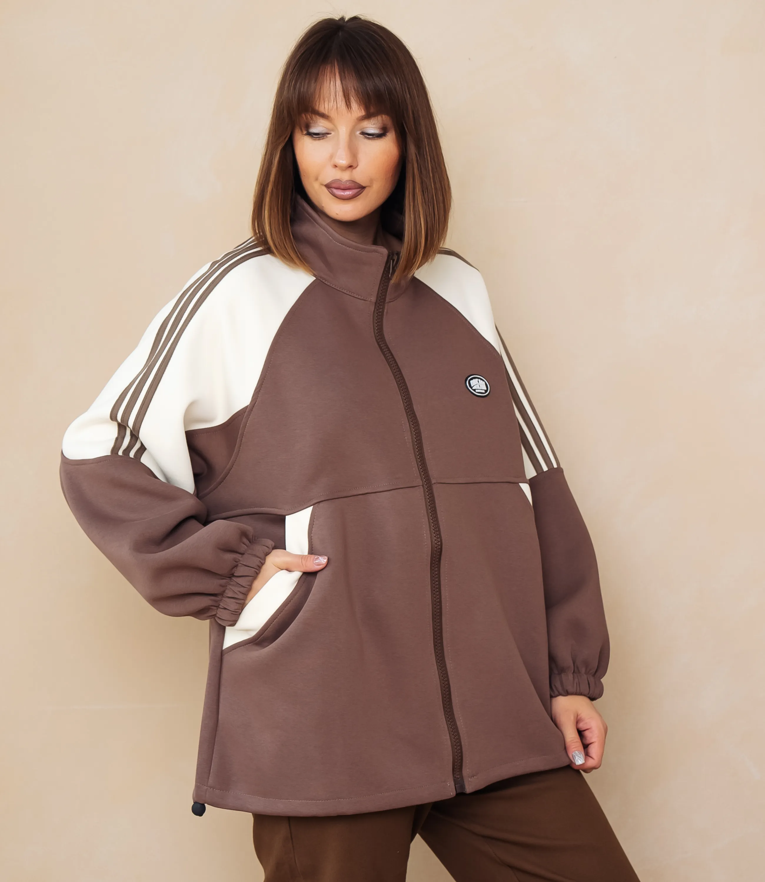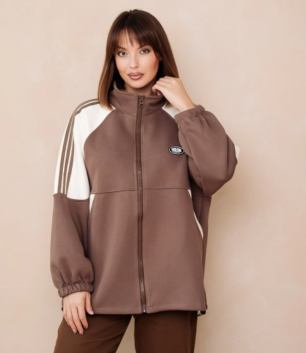 Толстовка – это идеальный элемент гардероба, который подчеркнёт комфорт каждой девушки. Свободная толстовка бомберного кроя длиной до верхней части бёдер с расслабленной линией плеч и лёгким объёмом в корпусе; низ собран эластичной кулиской, создавая аккуратное присборивание. Воротник стойкообразный средней высоты, переходящий в центральную застёжку‑молнию по всей длине переда. Регланные рукава спортивного характера с эластичными манжетами на запястьях; по наружной стороне рукавов и плеч идут контрастные продольные полосы, а плечевые и боковые вставки оформлены контрастной деталью. На левой стороне груди пришита небольшая нашивка‑логотип, на передней части расположены встраиваемые карманы. на спине есть принт в виде надписи. Для пошива использована ткань с составом 65% хлопка, 30% полиэстера и 5% эластана, что обеспечивает отменное качество и долговечность. Даже после многократных стирок толстовка останется в отличном состоянии. Вы сможете носить её с большим удовольствием. Обратите внимание на представленный цвет – он глубокий и соответствует фотографии на сайте. Чтобы вы были уверены в размере, на странице доступна таблица с размерами. Воспользовавшись ею, вы сможете обмерить себя и убедиться в правильности выбора. Наша цена является доступной и адекватной. Не упустите возможность подарить себе комфорт и стиль! Вы можете заказать онлайн презентацию на интересующие Вас модели. Наши менеджеры свяжутся с Вами и проведут индивидуальную видеотрансляцию, помогут составить заказ и ответят на Ваши вопросы.