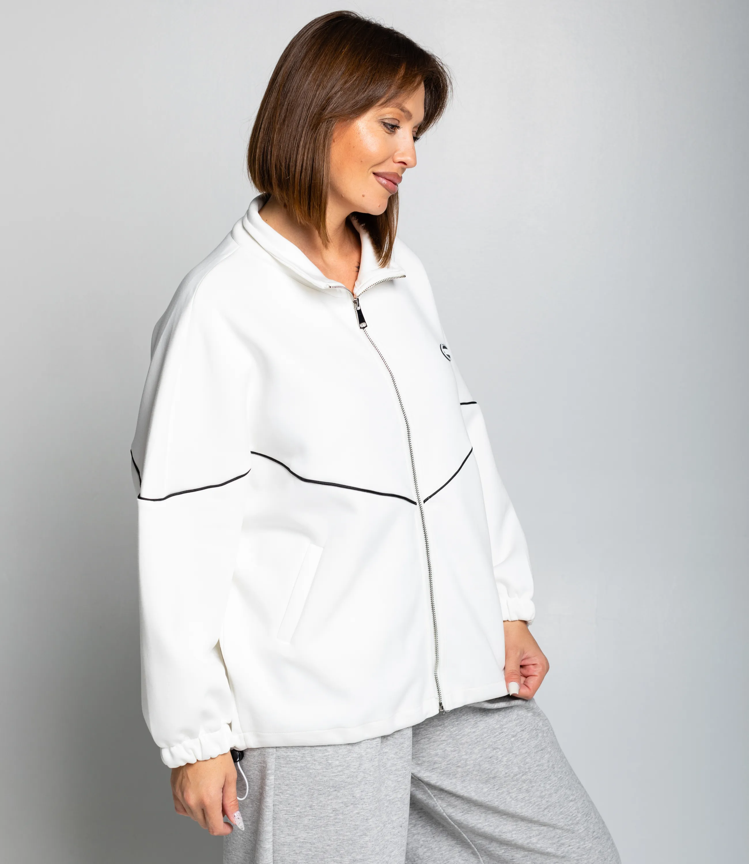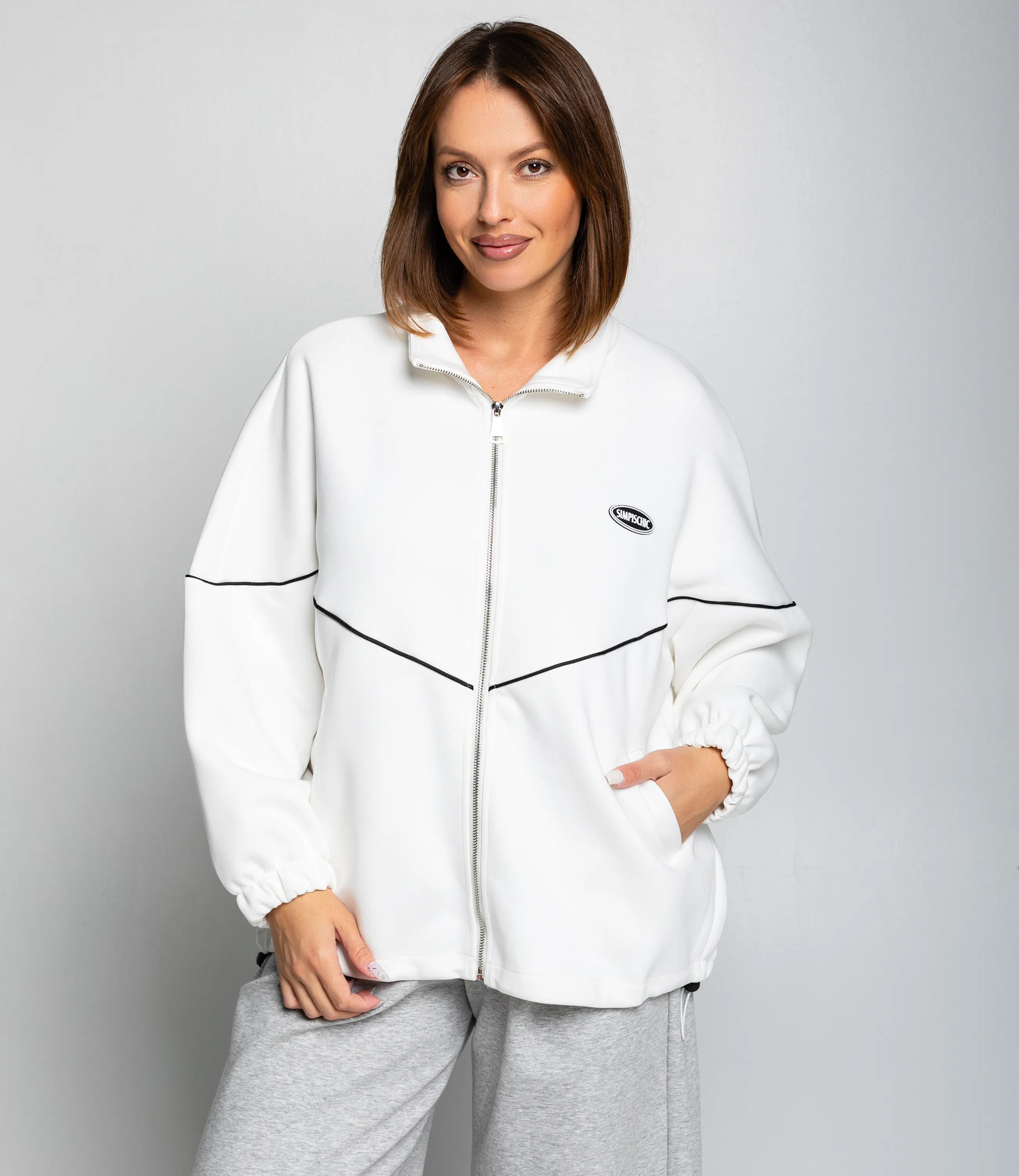 Толстовка – это идеальный элемент гардероба, который подчеркнёт комфорт каждой девушки. Модель выполнена в свободном объёме с ровным, чуть укороченным силуэтом до линии бёдер, создавая просторную и непринуждённую посадку. Горловина высокая стойка на молнии с удобной планкой, которая при застёгивании защищает шею; центральная застёжка-молния идёт по всей длине переда, что позволяет регулировать вентиляцию и трансформировать образ. Рукава длинные, объёмные, с эластичными манжетами, формирующими мягкую сборку у запястий и предотвращающими проникновение ветра. По линии груди проходит декоративная контрастная прострочка в виде V‑образной вставки, визуально разделяющая верхнюю и нижнюю части переда. Для пошива использована ткань с составом 65% хлопка и 35% полиэстер, что обеспечивает отменное качество и долговечность. Даже после многократных стирок толстовка останется в отличном состоянии. Вы сможете носить её с большим удовольствием. Обратите внимание на представленный цвет – он глубокий и соответствует фотографии на сайте. Чтобы вы были уверены в размере, на странице доступна таблица с размерами. Воспользовавшись ею, вы сможете обмерить себя и убедиться в правильности выбора. Наша цена является доступной и адекватной. Не упустите возможность подарить себе комфорт и стиль!