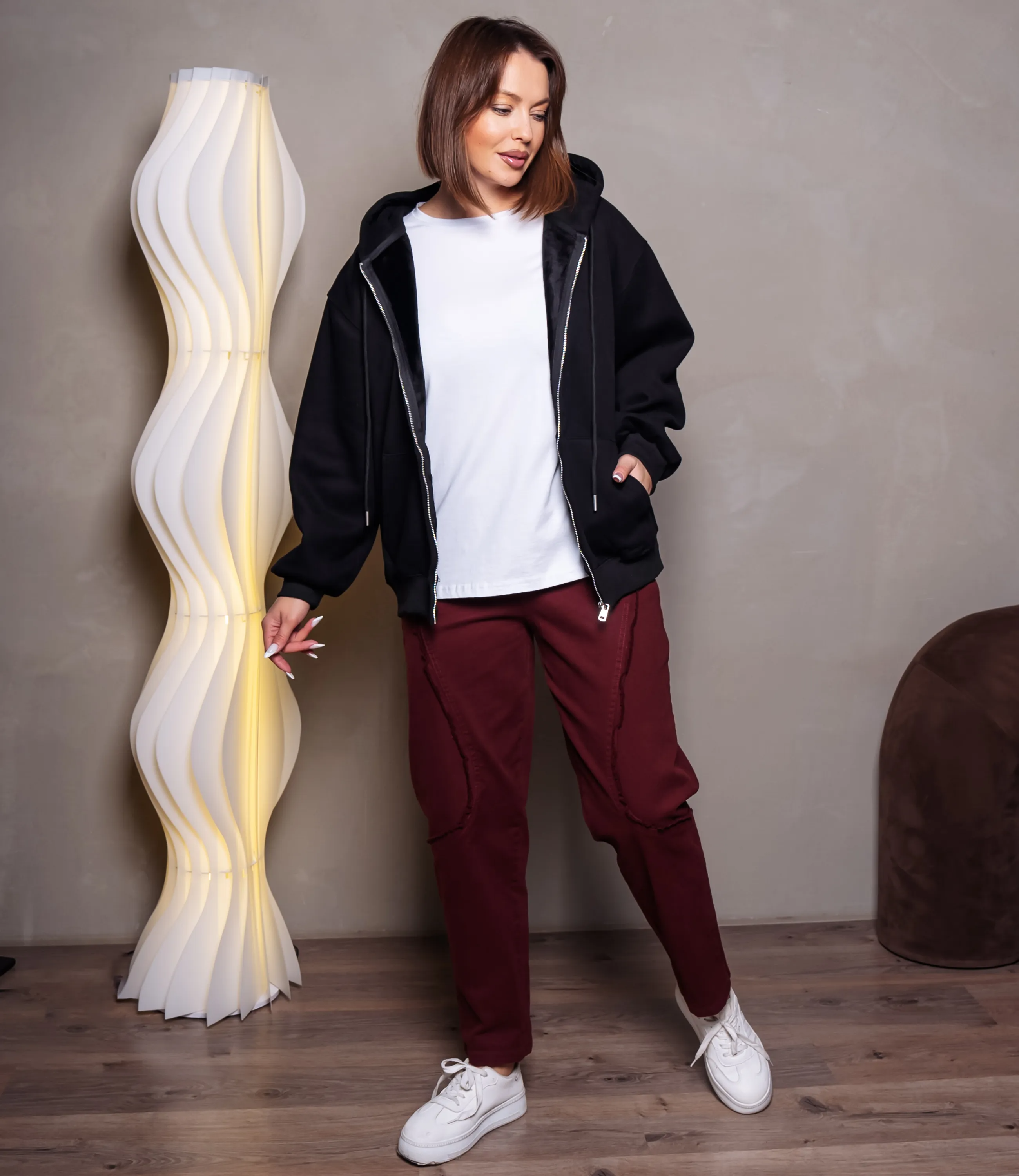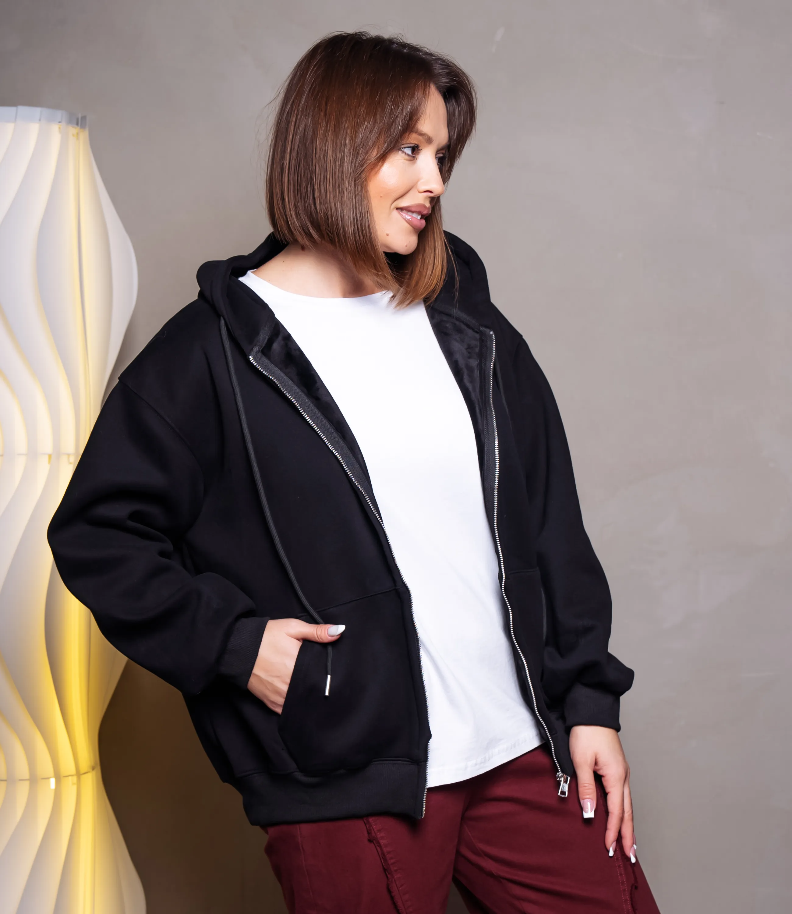 Толстовка – это идеальный элемент гардероба, который подчеркнёт комфорт каждой девушки.Свободного оверсайзного кроя до линии бёдер, выполнена из плотного трикотажа с мягкой внутренней стороной, держит форму и слегка утепляет; объёмный двуслойный капюшон с кулиской и широкими шнурами, втачной в горловину; центральная металлическая молния крупного типа от низа до горловины для полного расстёгивания; передние накладные карманы‑кенгуру с просторными входами и выраженными швами; длинные рукава с лёгким расширением в верхней части и плотными резиновыми манжетами на запястьях. Для пошива использована ткань с составом 90% хлопка и 10% полиэстер, что обеспечивает отменное качество и долговечность. Даже после многократных стирок толстовка останется в отличном состоянии. Вы сможете носить её с большим удовольствием. Обратите внимание на представленный цвет – он глубокий и соответствует фотографии на сайте. Чтобы вы были уверены в размере, на странице доступна таблица с размерами. Воспользовавшись ею, вы сможете обмерить себя и убедиться в правильности выбора. Наша цена является доступной и адекватной. Не упустите возможность подарить себе комфорт и стиль!