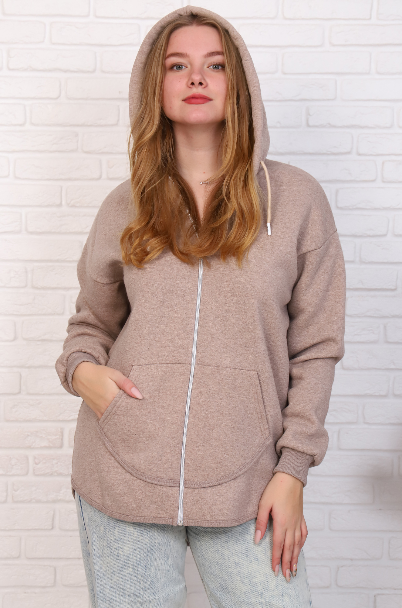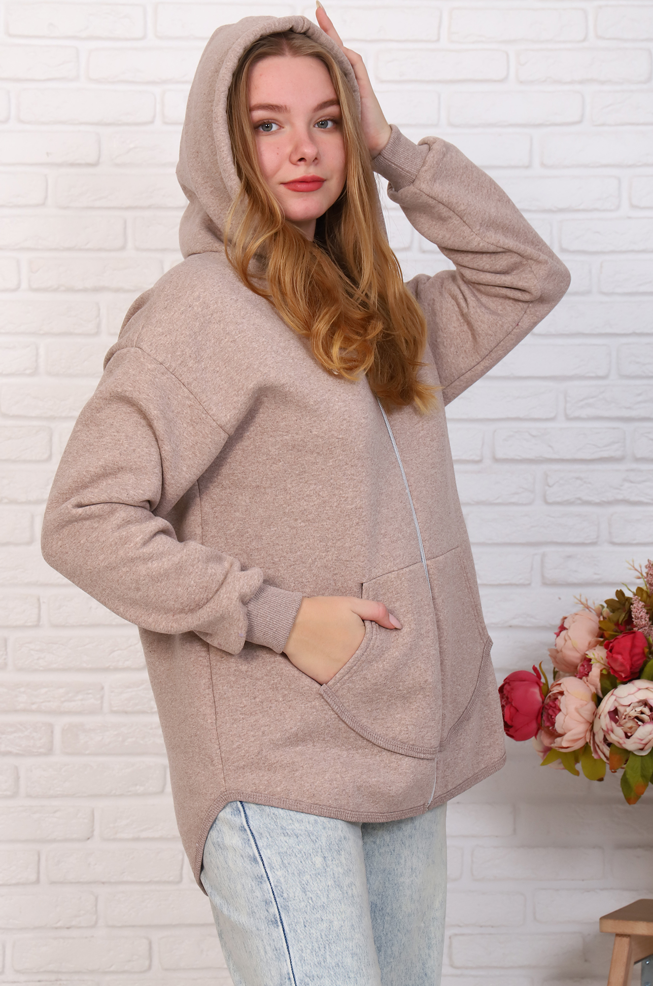 Женская флисовая толстовка с капюшоном, застёжка - молния, удобные вместительные карманы.