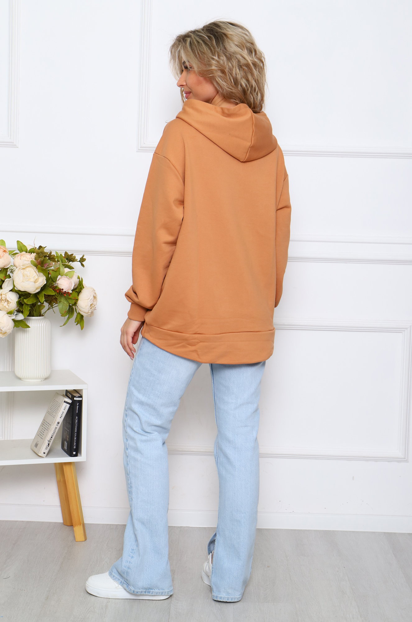 Стильная женская толстовка для тех, кто следит за модой и хочет быть в тренде! Модель с капюшоном свободного кроя в стиле "оверсайз", снизу на манжете из основной ткани сзади чуть расширенном, плечо спущенное. На полочке печатный принт и оригинальный перевёрнутый карман-кенгуру. Отличный вариант к джинсам, брюкам, шортам и леггинсам. Ткань - футер трёхнитка петля-диагональ пенье качества, плотность 300-320 г/м2. Поверхность мягкая и шелковистая, очень приятная к телу, плотная, прекрасно сидит на любой фигуре и великолепно держит форму.