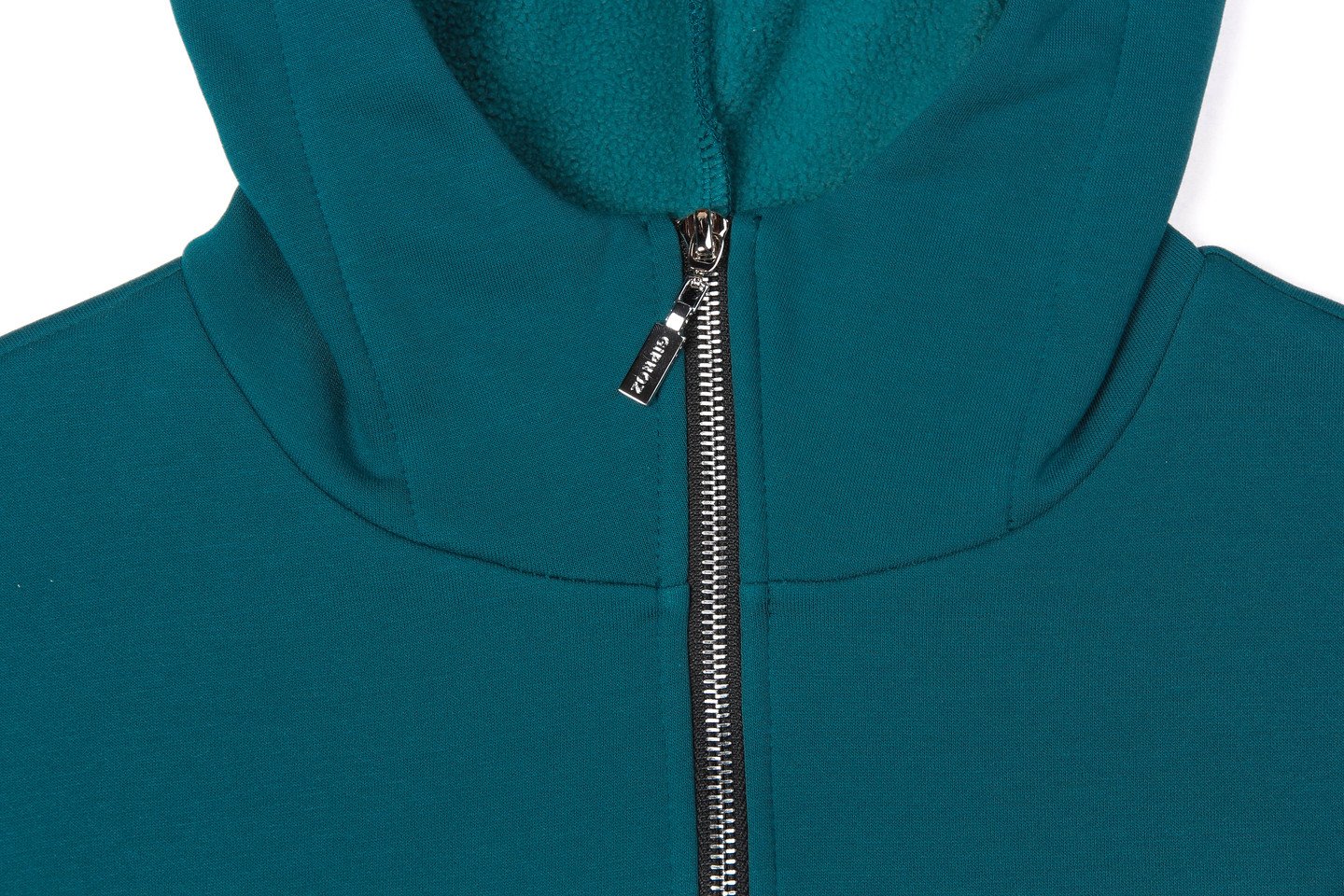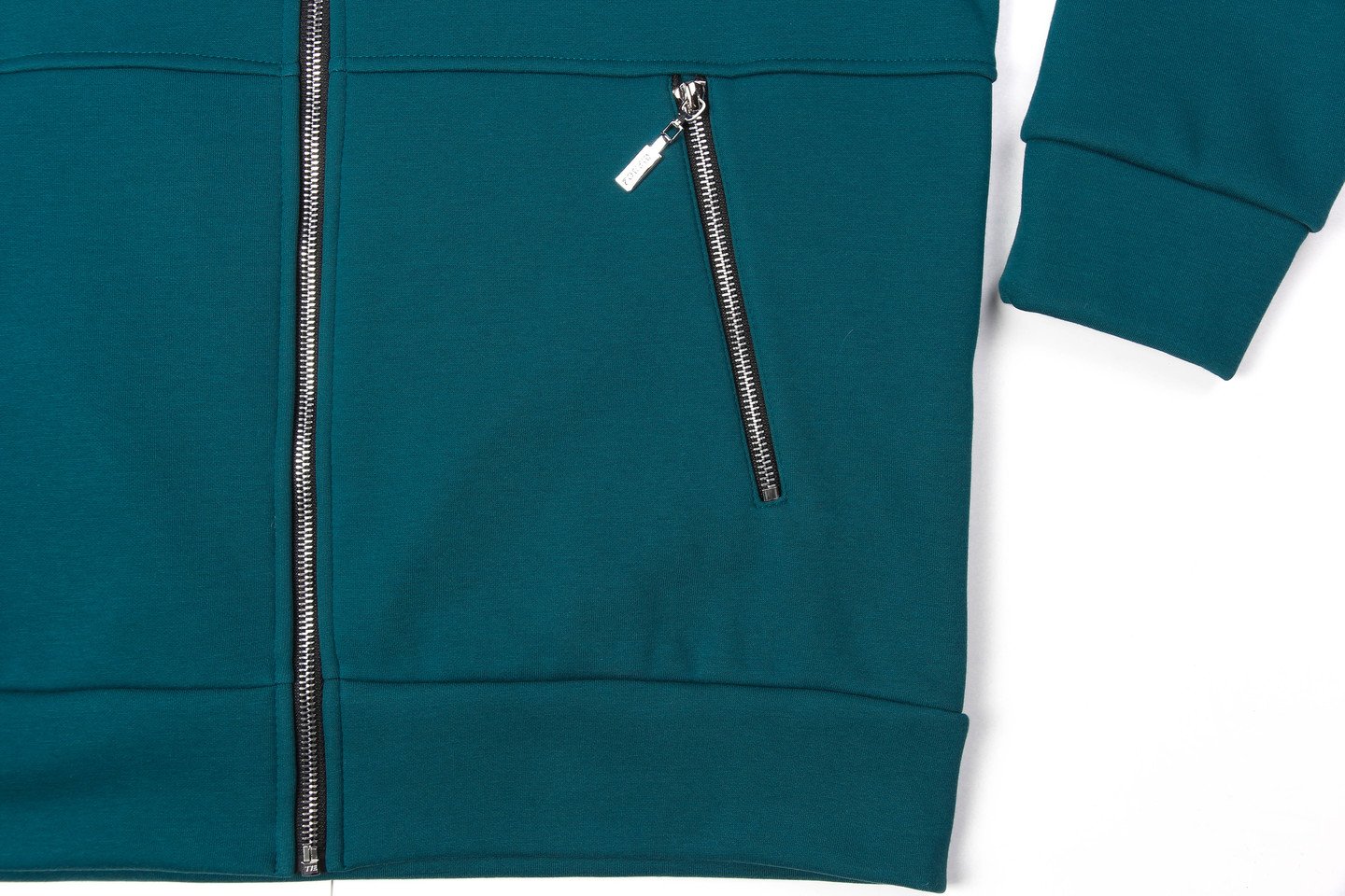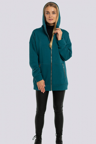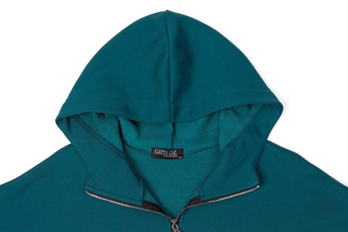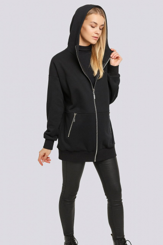 Настала пора холодов, а значит, пора утепляться В наше время выглядеть стильно и модно, и при этом чувствовать себя комфортно стало возможным даже в самое холодное время года. Подарит вам удобство и не даст замерзнуть морозным днем толстовка из утепленного трикотажа. Толстовка «оверсайз» с капюшоном. Застежка и карманы на «молниях». На спинке пришивной металлический декор. Низ изделия и низ рукава обработаны поясом и манжетами. Трикотаж утепленный на флисе, состав: 75% хлопок, 20% полиэстер, 5 % спандекс.