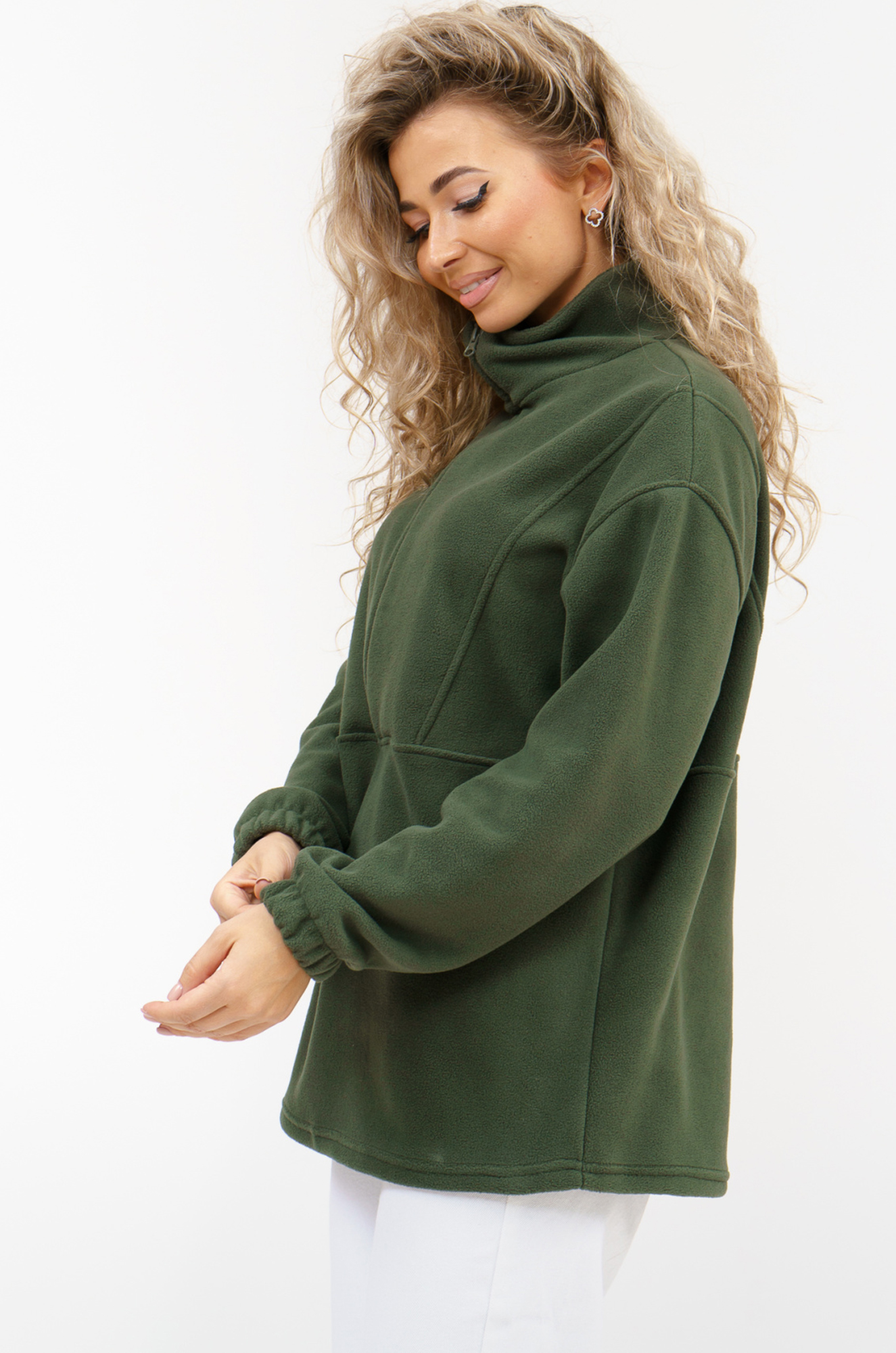 Стильная женская флисовая толстовка в сопортивном стиле. Отрезная кокетка на молнии, воротник-стойка. Модель без карманов.