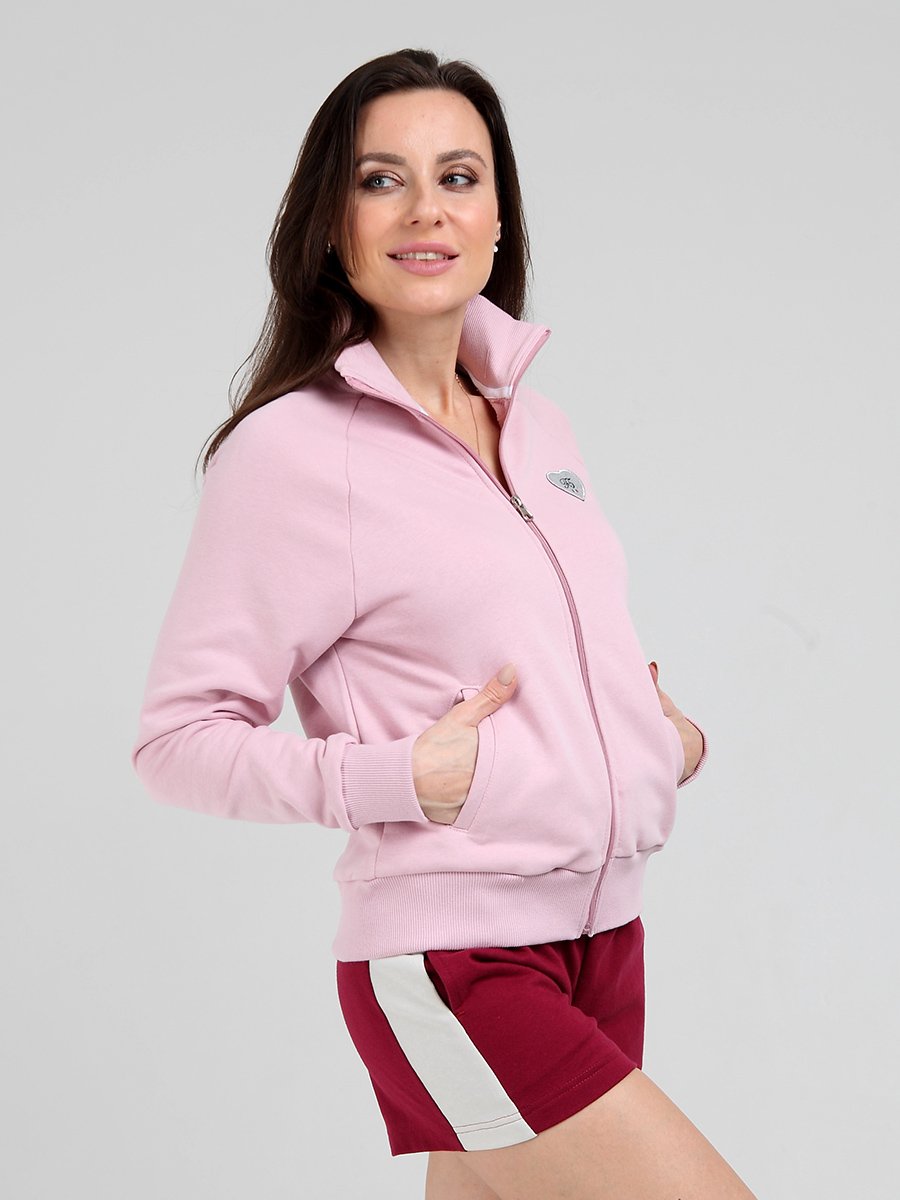 Женская толстовка классического кроя выполнена из комфортного трикотажного полотна футера. Рукава реглан с манжетами. Застежка-молния спереди по всей длине изделия. Воротник стойка. Вместительные карманы на полочках в районе талии.