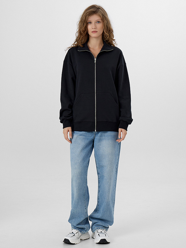 Эта удобная женская черная толстовка на молнии создана для повседневной носки. Модель свободного кроя с застежкой-молнией подарит комфорт в любой ситуации.