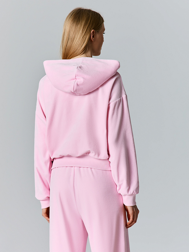 Розовая женская толстовка на молнии из мягкой махры — это уютный вариант для прохладных дней. Свободный силуэт и длинные рукава обеспечивают комфорт и тепло, а центральная молния и накладные карманы делают модель практичной.