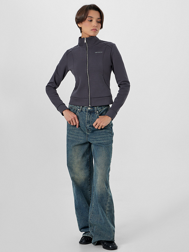 Женская толстовка прилегающего силуэта в насыщенном металлическом сером цвете с мотивирующей надписью «Впечатляй» создана для тех, кто ценит современный крой и внимание к деталям. Модель оснащена удобной застежкой-молнией по центру, которая позволяет легко регулировать степень открытости и создавать многослойные образы.