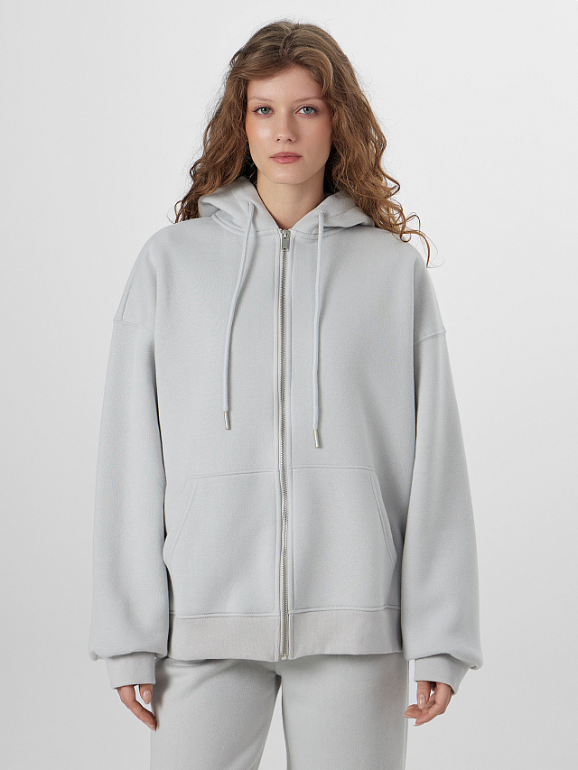 Удобный прямой крой с капюшоном на кулиске и спущенными плечами обеспечивает полную свободу движений. Плотный начес эффективно сохраняет тепло, делая толстовку идеальной для прохладной погоды. Эластичные манжеты из рибаны и центральная застежка на молнию дополняют практичность модели.