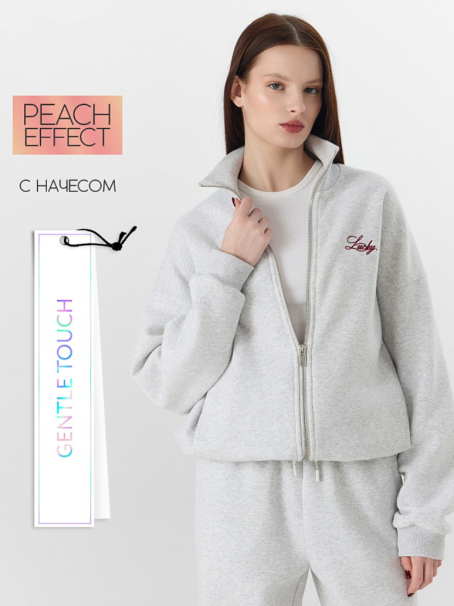 Серая теплая толстовка из коллекции Gentle Touch — это уютная модель свободного кроя. Она выполнена из особого футера с пич-эффектом, который создаёт бархатистую, нежную поверхность, приятную на ощупь и хорошо сохраняющую тепло.