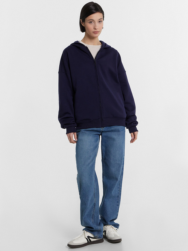 Эта женская толстовка на молнии станет стильным и удобным дополнением вашего гардероба. Футер, из которого выполнена модель, обеспечивает мягкость и тепло, необходимые для прохладных дней. Свободный силуэт гарантирует максимальный комфорт и современный стиль, а капюшон добавляет дополнительную защиту от непогоды. Центральная застежка на тесьму-молнию обеспечивает удобство в носке. Длинные рукава с эластичными манжетами из рибаны и спущенное плечо подчеркивают современный стиль толстовки. В боковых швах расположены карманы с подкладкой из кулирки, что делает эту модель еще более практичной и удобной.
