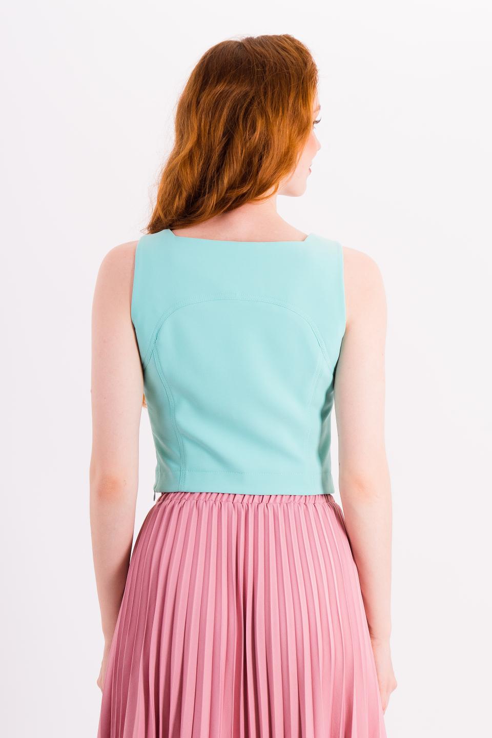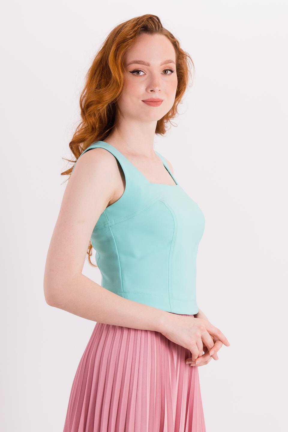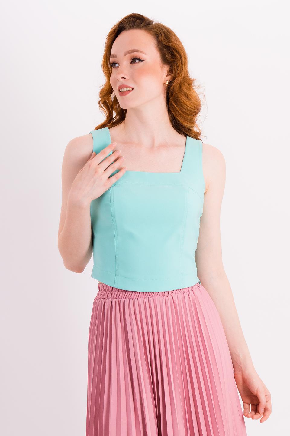Описание: Кроп-топ из костюмной ткани выполнен в стилевом решении под корсет. Он прекрасно дополнит образ с широким жакетом и брюками.