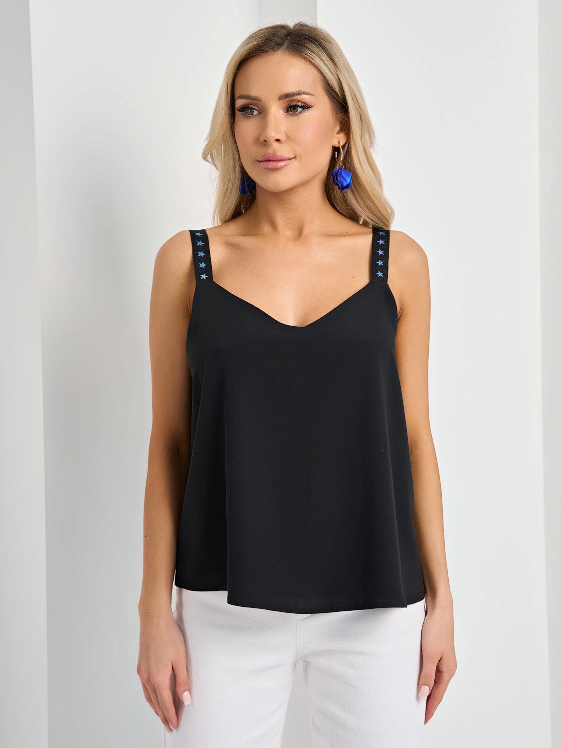 Топ на бретелях из репсовой ленты с печатью свободного силуэта.