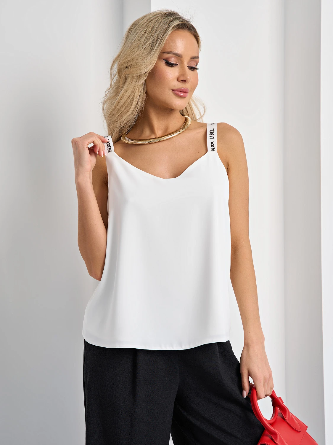 Топ на бретелях из репсовой ленты с печатью свободного силуэта.