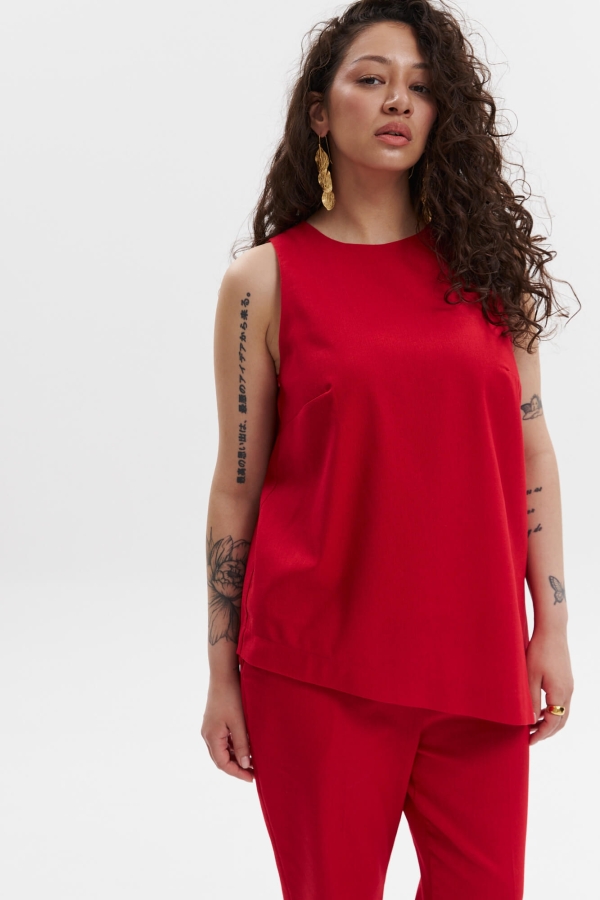 Топ А-силуэта с ассиметричным низом и разрезами по бокам.