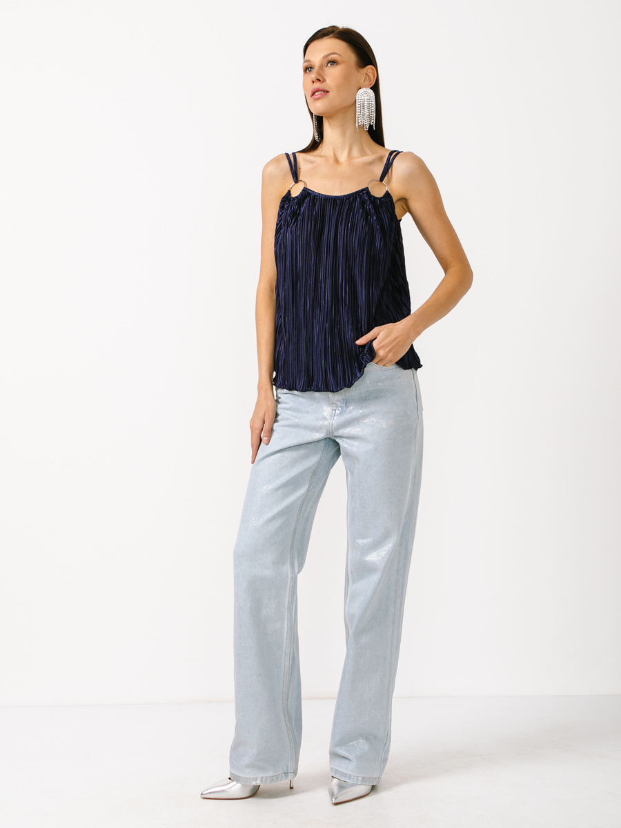 Топ из атласной ткани-плиссе