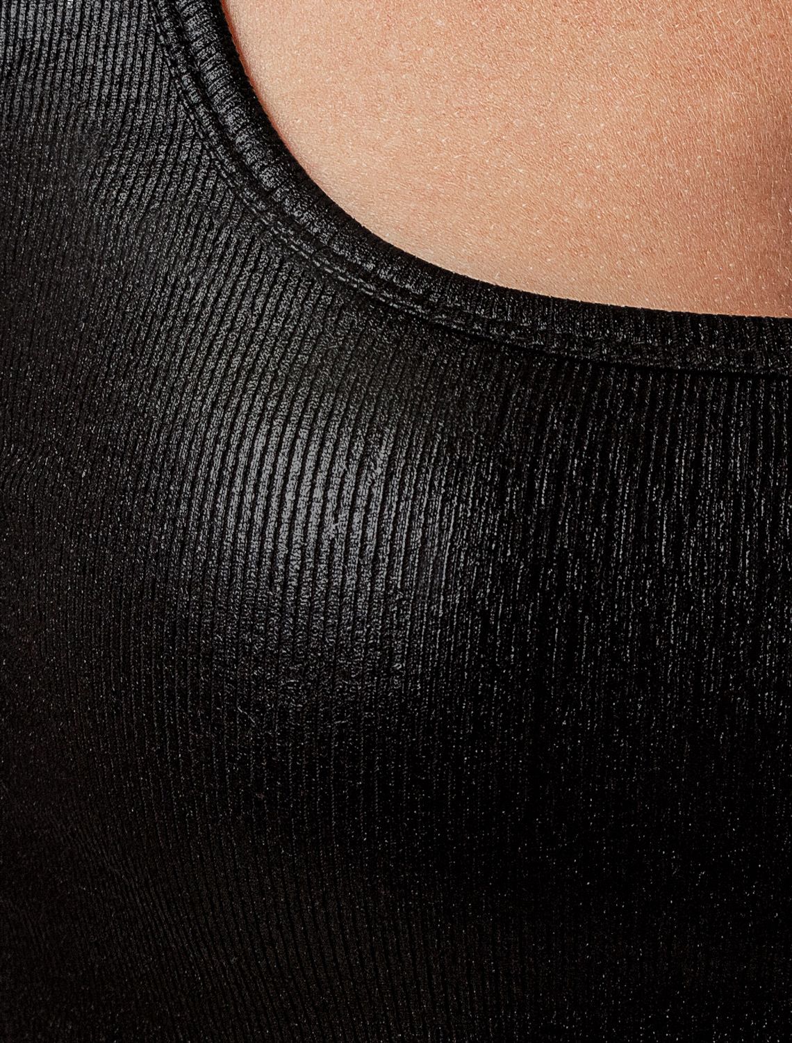 Топ из хлопка с эластаном в рубчик с матовым металлическим покрытием