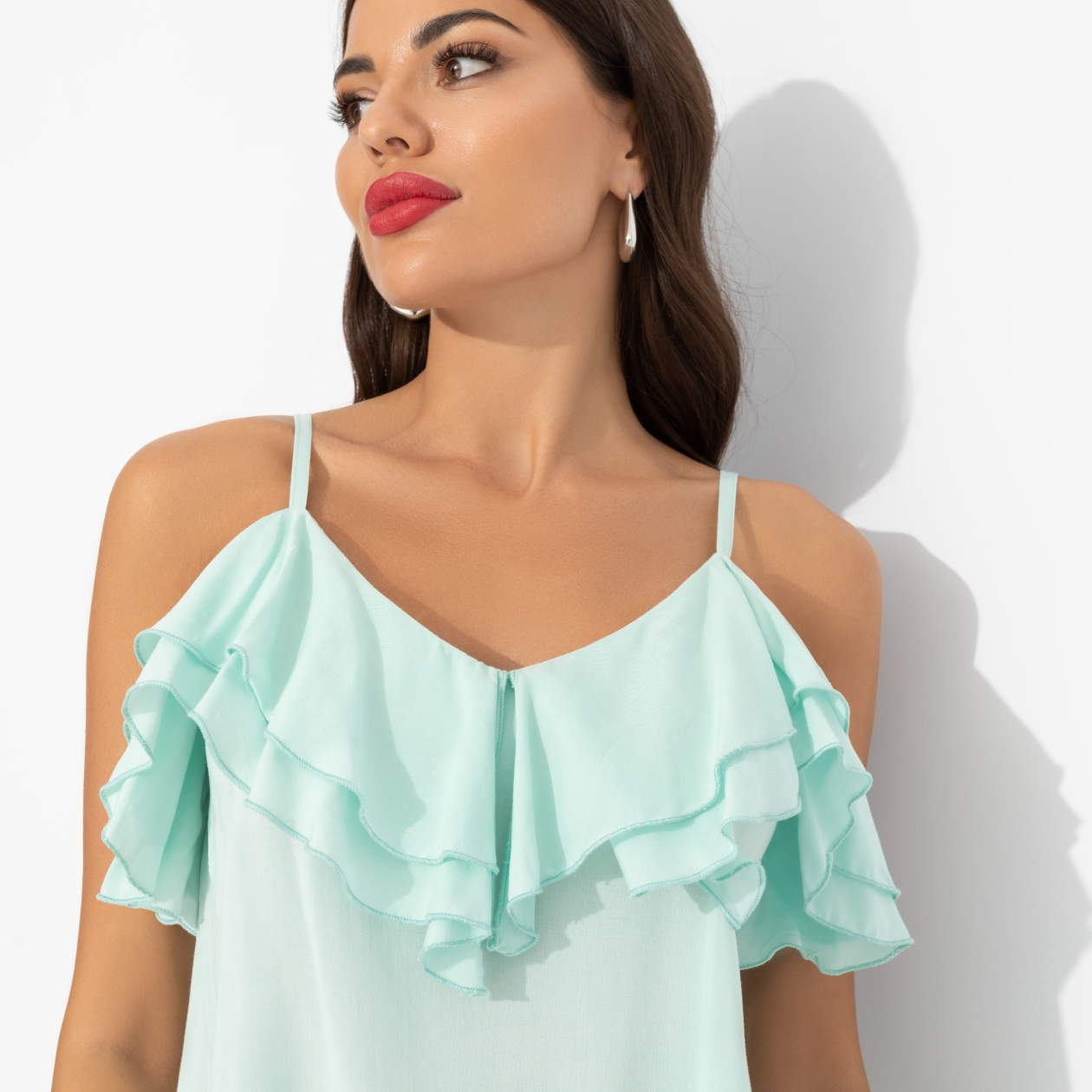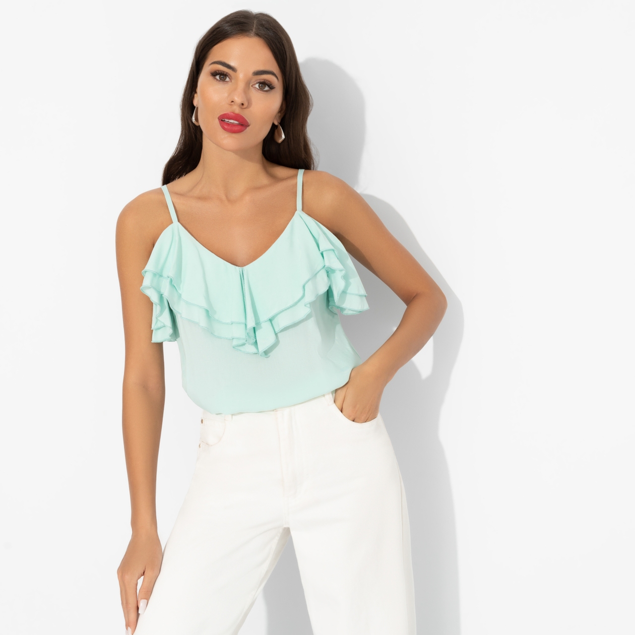 Топ из вискозы с воланами, Смотри не засмотрись (мятный)