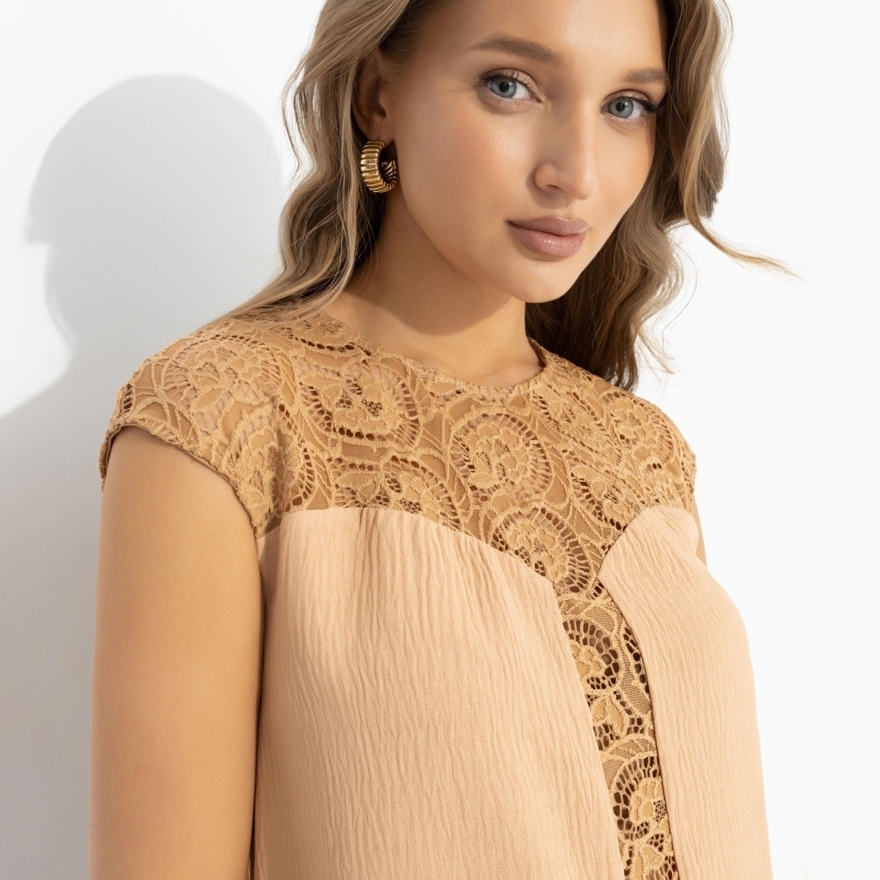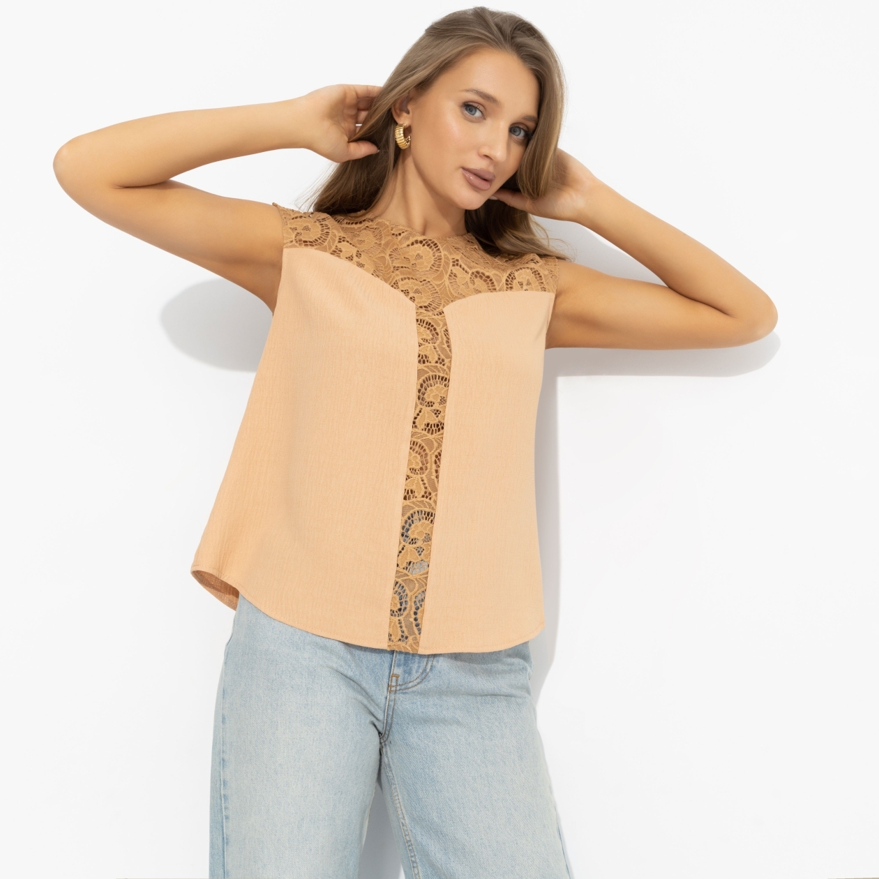 Когда утро начинается с решения быть заметной. Этот топ с кружевом – про игру фактур и внутреннюю смелость. Кружево больше не скрывается. Оно – главный акцент образа. Название не случайно: этот образ говорит за вас. Громко. И очень красиво.