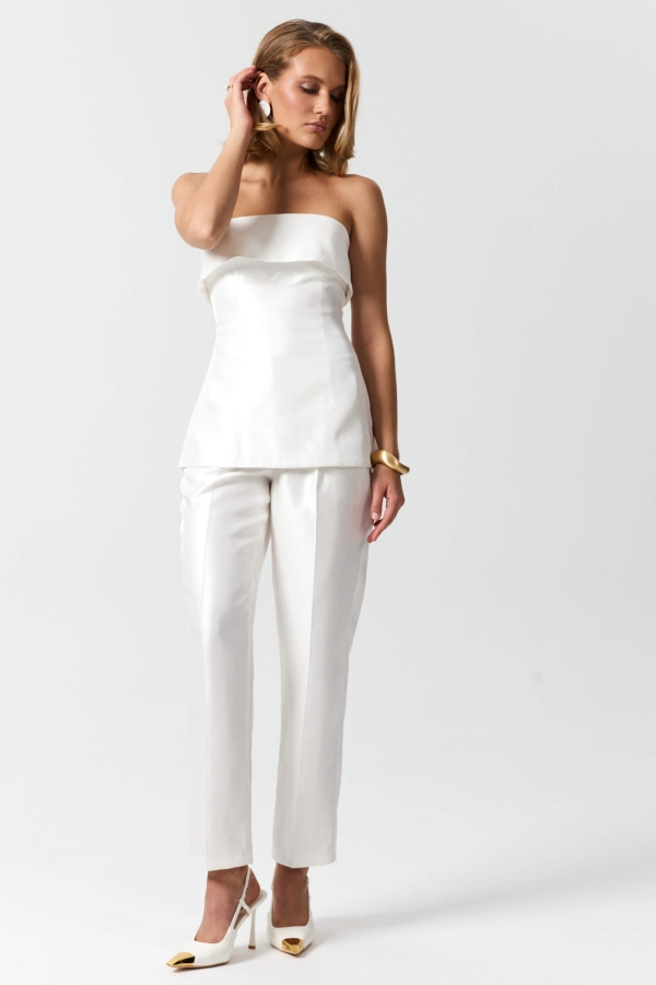 Топ-корсет с регулируемой шнуровкой по спинке. Модель прилегающего силуэта расширенная к линии бедер с декоративной отлетной кокеткой. По спинке застежка на потайную молнию и шнуровку.