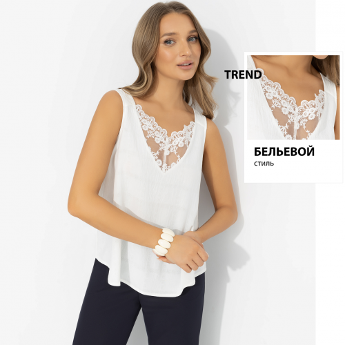 Этой весной модные дома делают ставку на прозрачные слои, бельевую эстетику и сложный белый – не стерильный, а фактурный, «живой». Топ от дизайнеров ЧАРУТТИ попадает точно в этот тренд. Кружево, сетка, жаккард – всё то, что показывали на подиумах как новый способ выглядеть женственно и уверенно одновременно. Такой топ не дополняет образ, он его задаёт. Топ с V-образным вырезом мягко подчеркивает линию декольте. Ткань комфортная, с содержанием вискозы, отлично драпируется. Модель легко сочетается с жакетами и брюками.