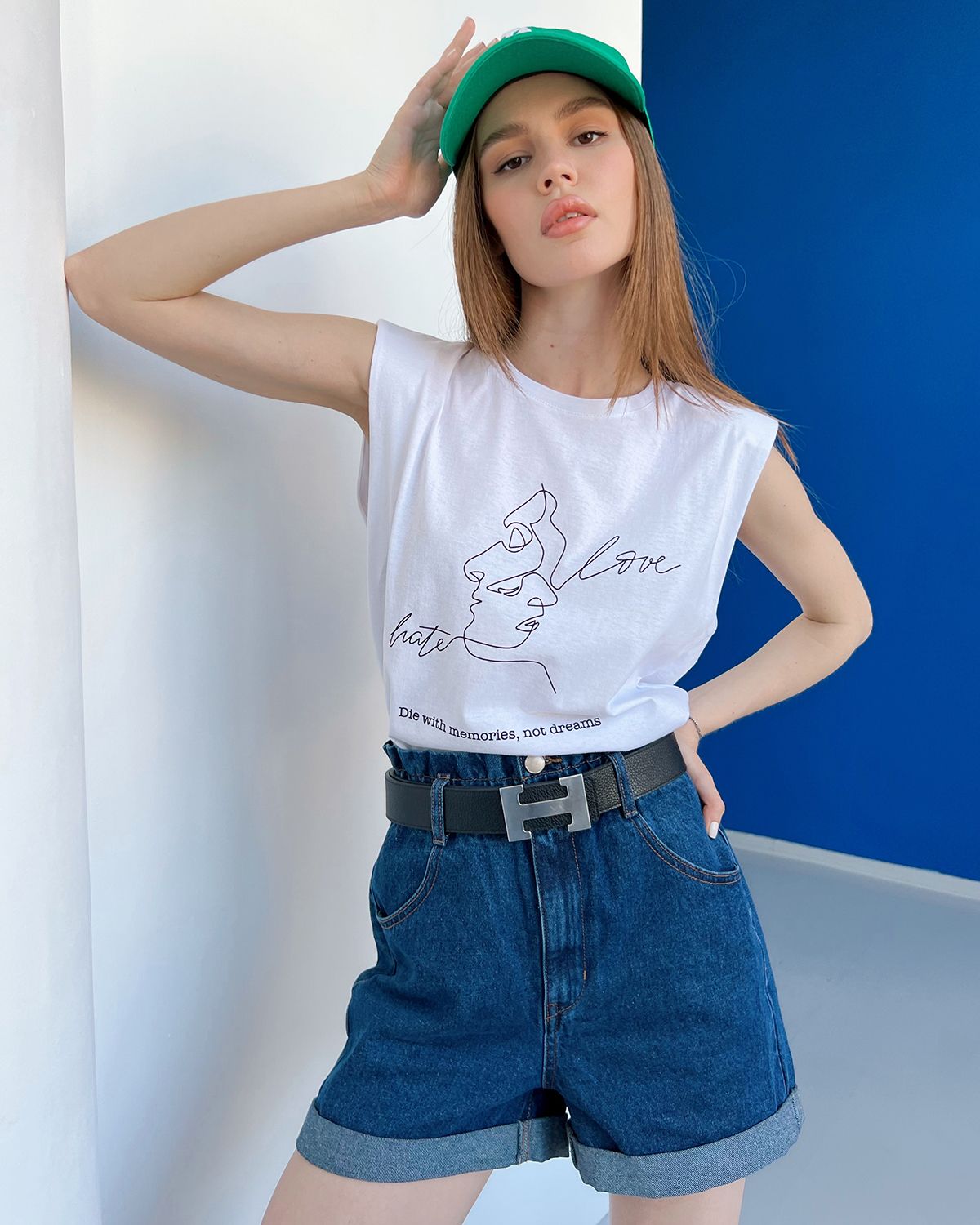 Топ-авторский принт с подплечниками свободного кроя, с увеличенной проймой 100% хлопок