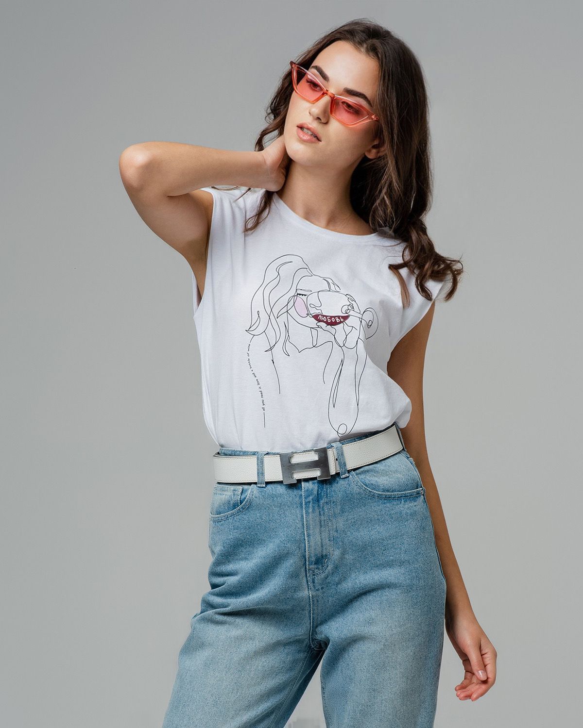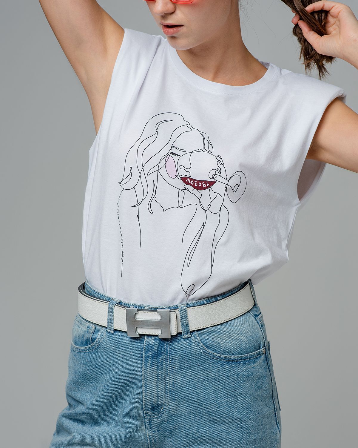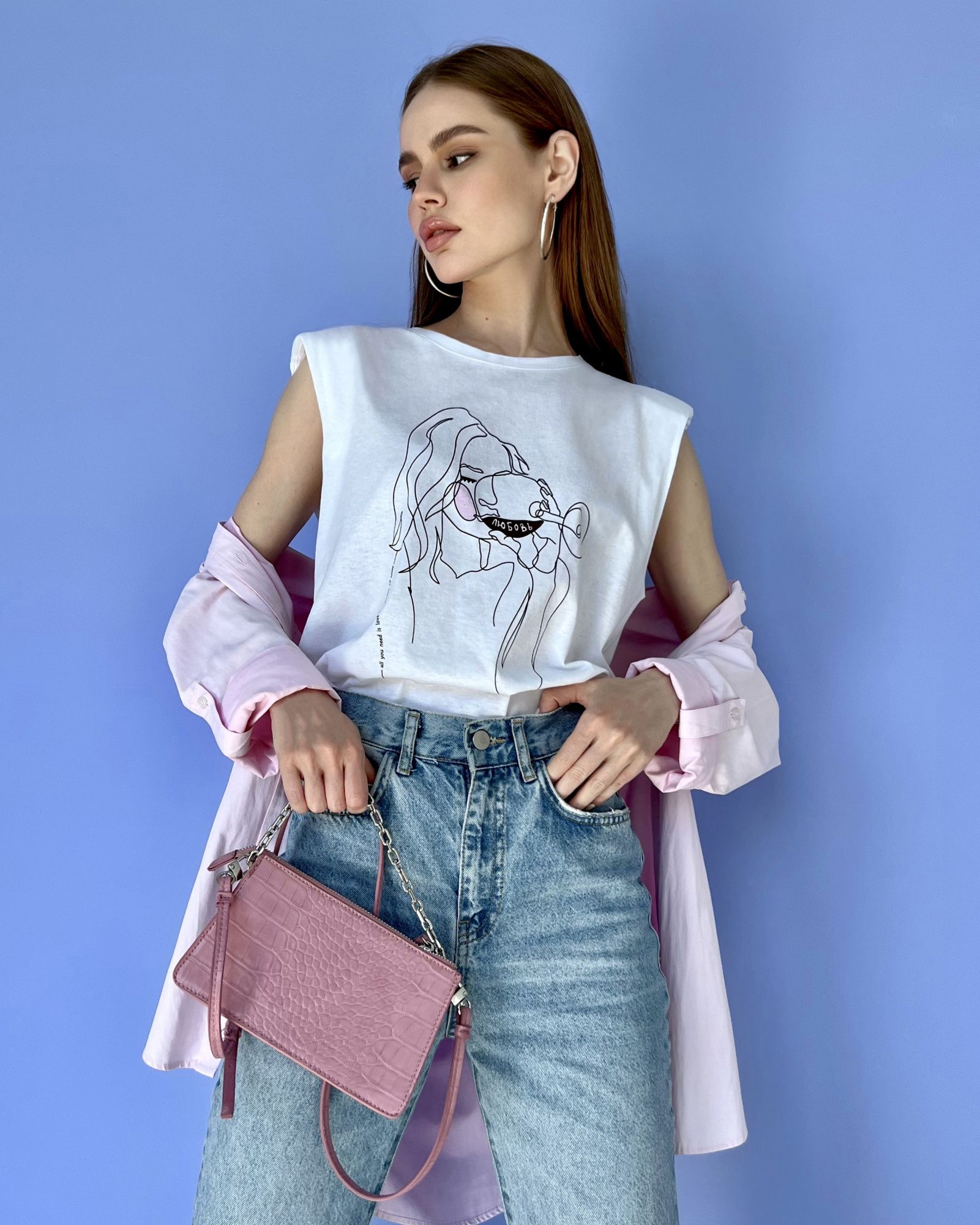Топ-авторский принт с подплечниками свободного кроя, с увеличенной проймой 100% хлопок