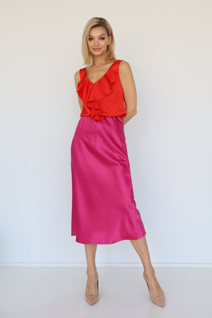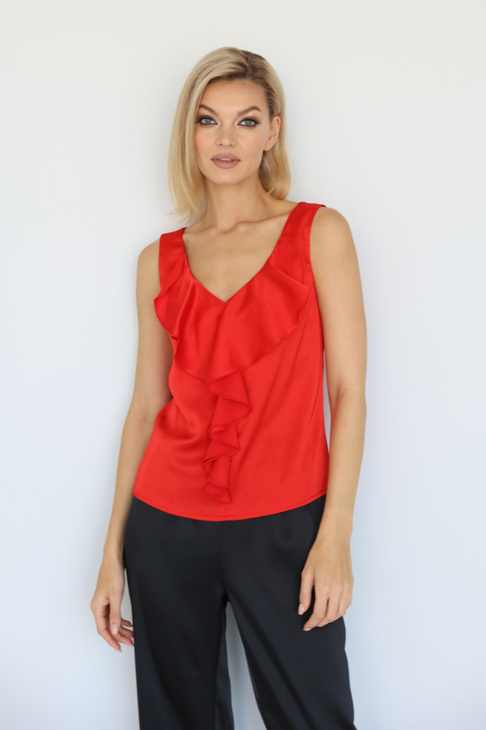 Топ из искусственного шёлка с рюшей по груди и линии переда