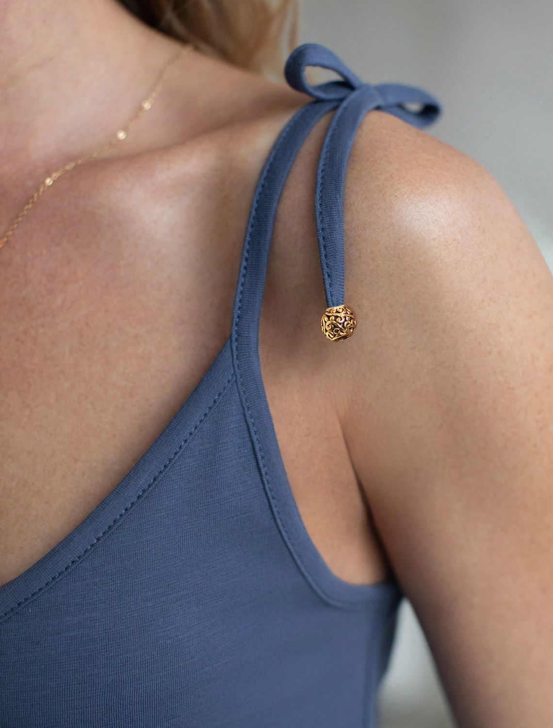 Топ с V-вырезом на регулируемых бретелях-завязках из фактурного 100% хлопка флам