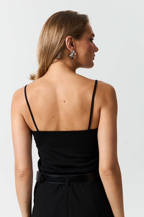 Приятный базовый топ из трикотажного вискозного полотна. Топ прилегающий двойной, с тонкими бретелями.