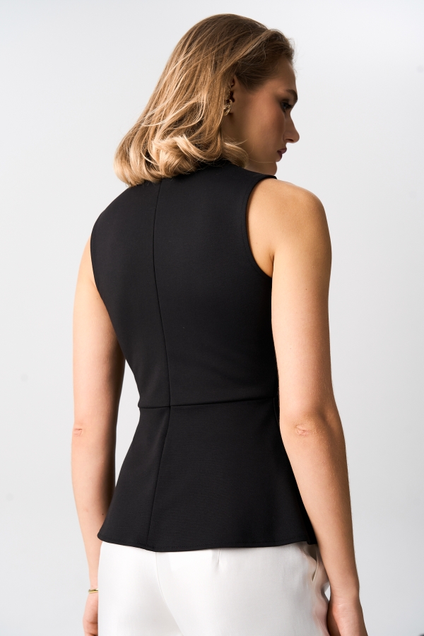 Модель прилегающего силуэта с баской с имитацией запаха. Воротник стойка. По спинке застежка на потайную молнию.