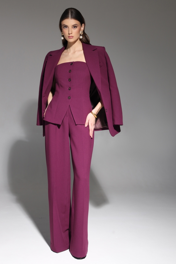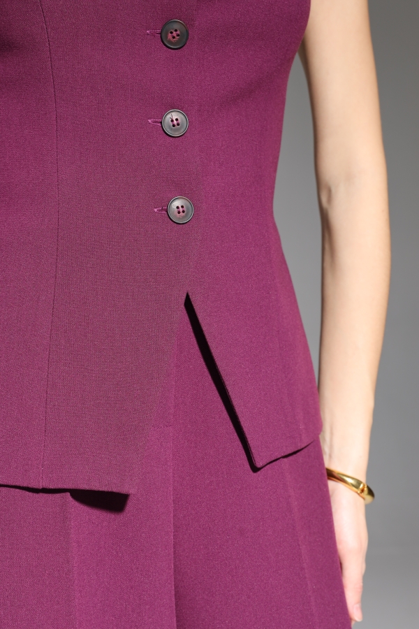 Трендовый прилегающий топ из костюмного полотна для любого случая. Застёжка на петли и пуговицы. По спинке усилен силиконовой резинкой и регилином в боковых швах. Изделие на подкладе.