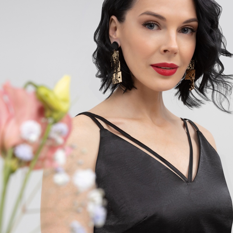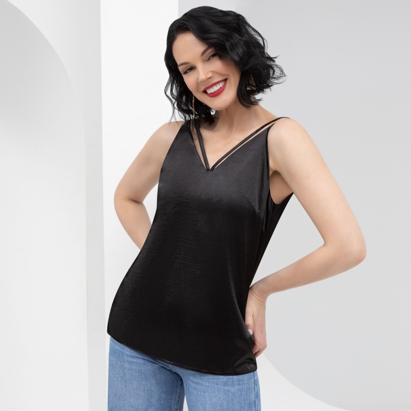 Вечная классика. Соблазнительный топ black. Эффект усиливает атлас крэш. Манящие линии, лёгкий барьер между ужином и продолжением. Атэнсьон! Ты в опасности, он не отступит!