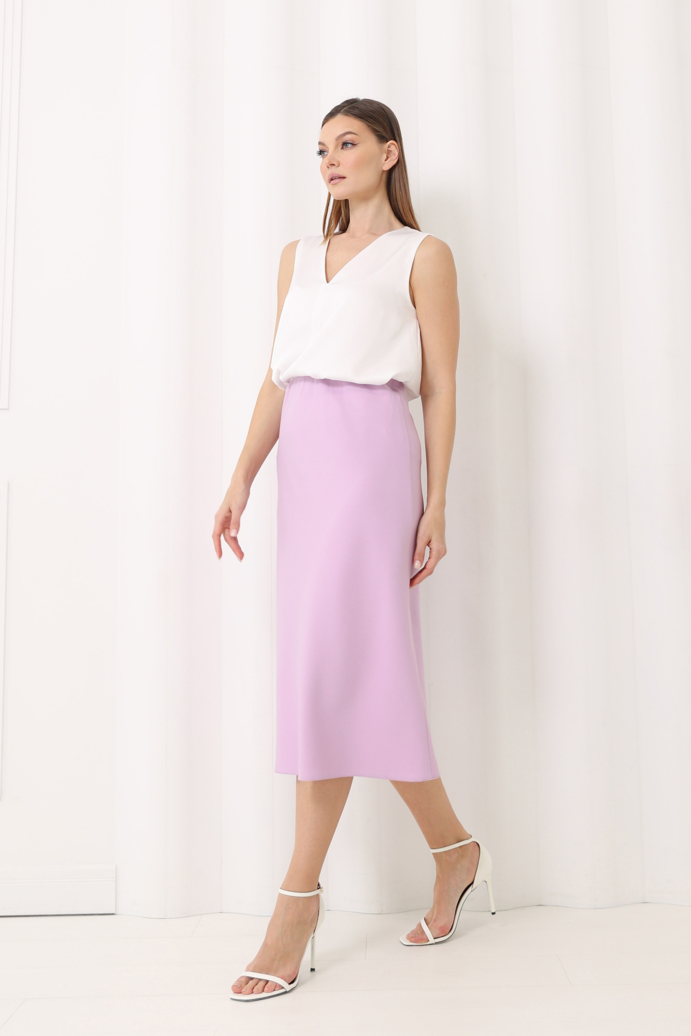 Параметры модели: 175 см, грудь 86 см, талия 66 см, бедра 96 см.