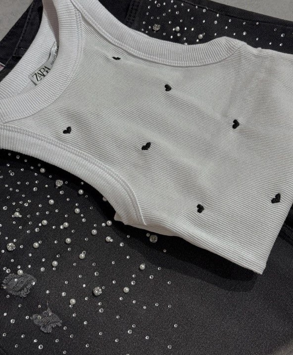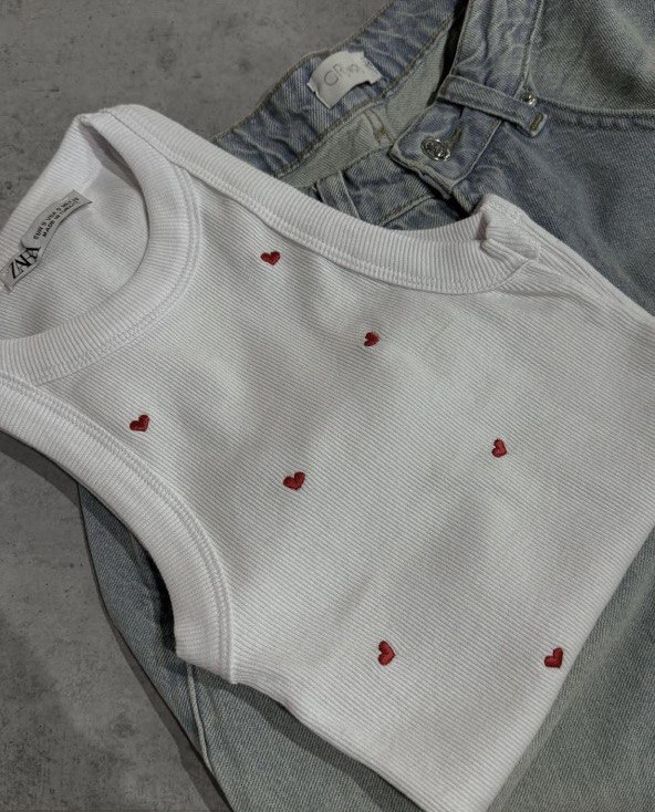 Топ в рубчик с вышивкой