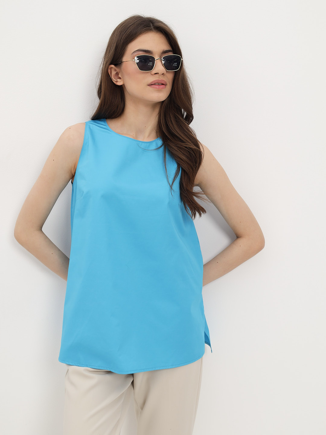 Цвет: Голубой Рисунок: Без рисунк..показатьа Состав: 100% хлопок Модель: Свободная Караман: отсутствуета