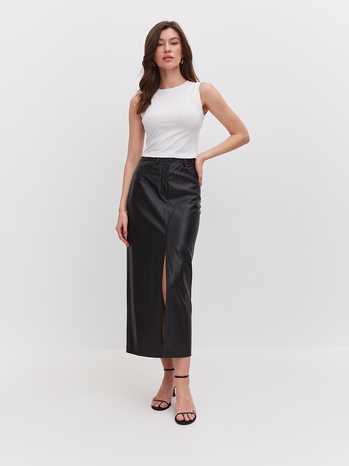 Цвет: Белый Рисунок: Без рисунка<..показать/li> Состав: 60%вискоза 31%нейлон 9%эластан Модель: Зауженная навыпуск укороченная Ворот: Круглый Караман: отсутствует/li>