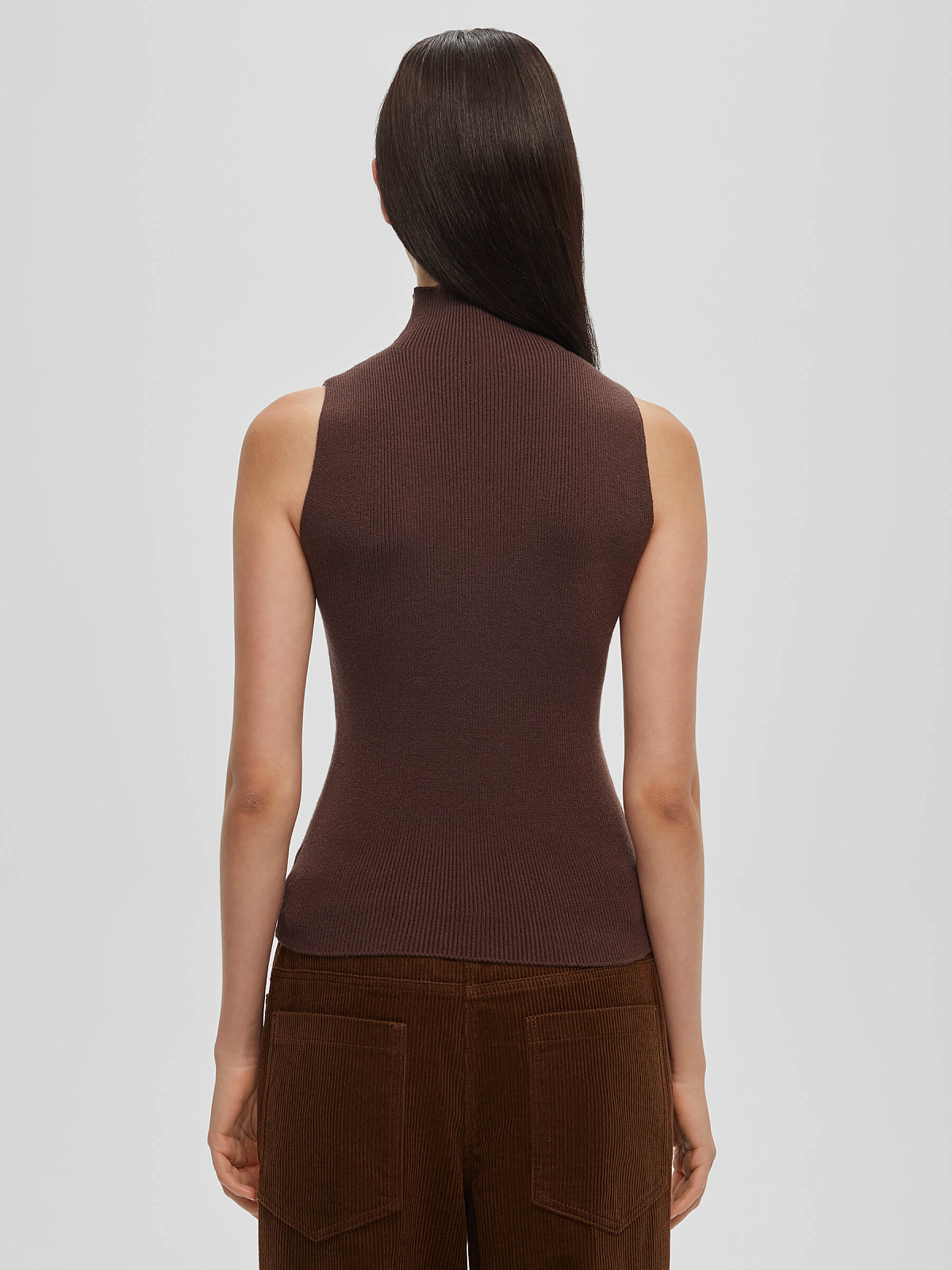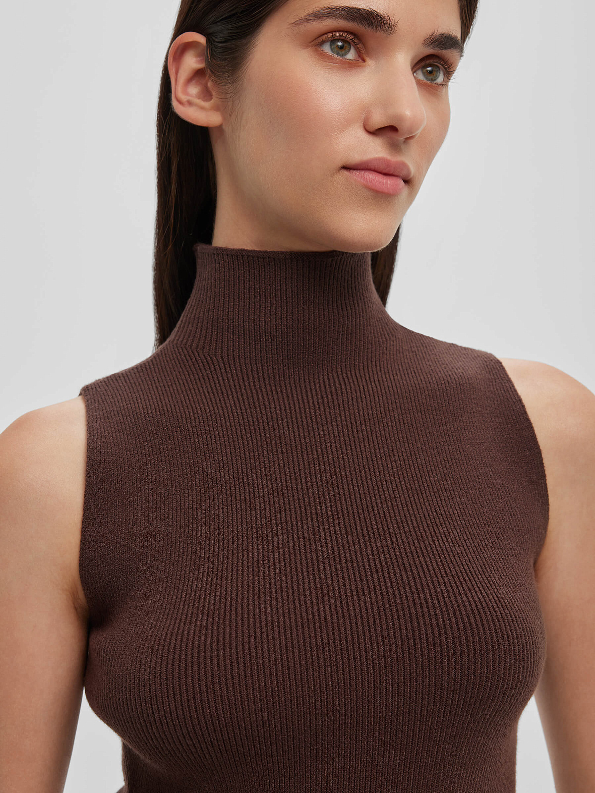 Трикотажный топ с воротником стойка, коричневый