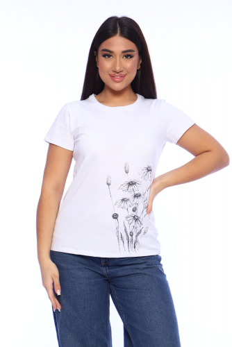 Наслаждайтесь комфортом и свободой движений благодаря полуприлегающему силуэту футболки, который подчеркнет вашу фигуру без ощущения стеснения. Изготовленная из высококачественного материала, наша футболка прекрасно садится на тело и обеспечивает максимальный комфорт в любое время дня. Цвет: белый; Материал: кулирка с лайкрой;кулирка с лайкрой; Состав: Хлопок 95%, лайкра 5%.