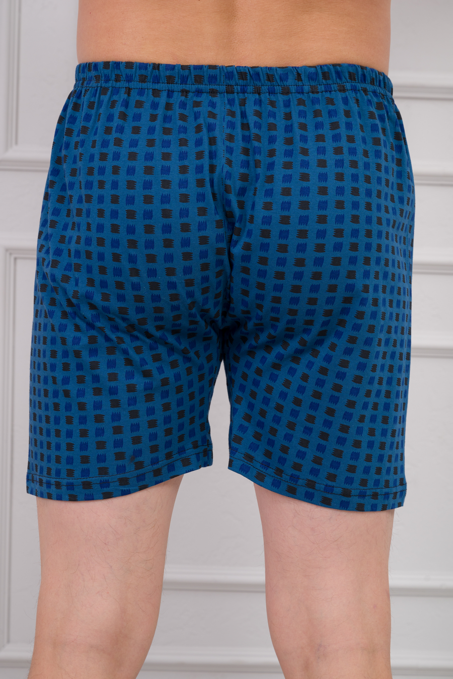 Трусы-боксеры мужские на пуговице из кулирки Абстракция индиго