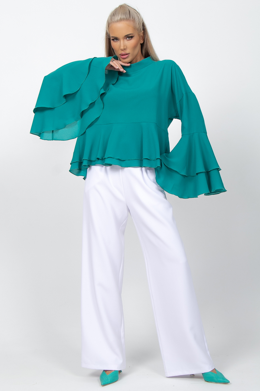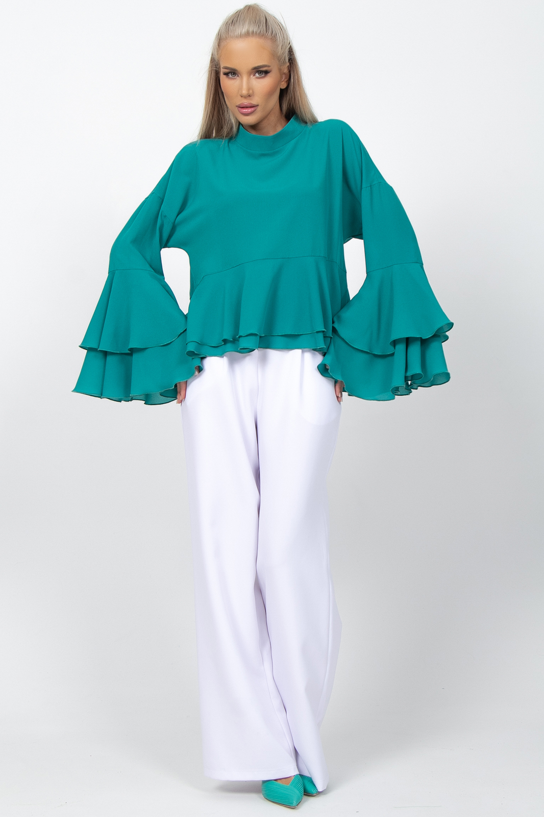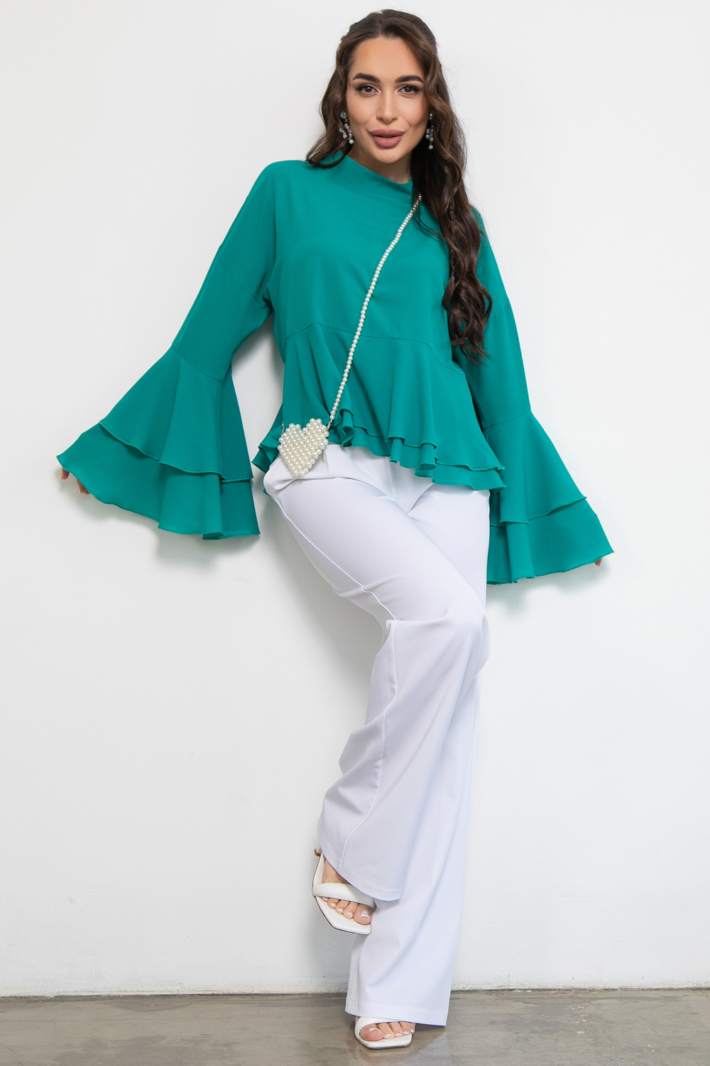 Представляем вашему вниманию изысканную тунику, которая идеально подойдет для нарядных случаев. Эта блузка с длинным рукавом с воланом станет отличным выбором для вечеринок, праздничных мероприятий или романтических встреч.