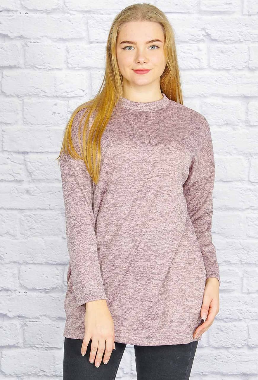 Тёплая женственная туника прямого кроя, рукав со спущенным плечом, по бокам карманы.