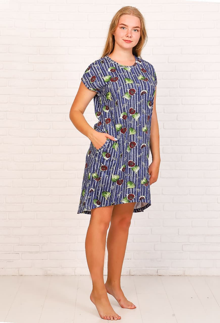 Туника свободного кроя с удлиненной спинкой. В боковых швах удобные кармана. Рукава и вырез горловины окантованы.